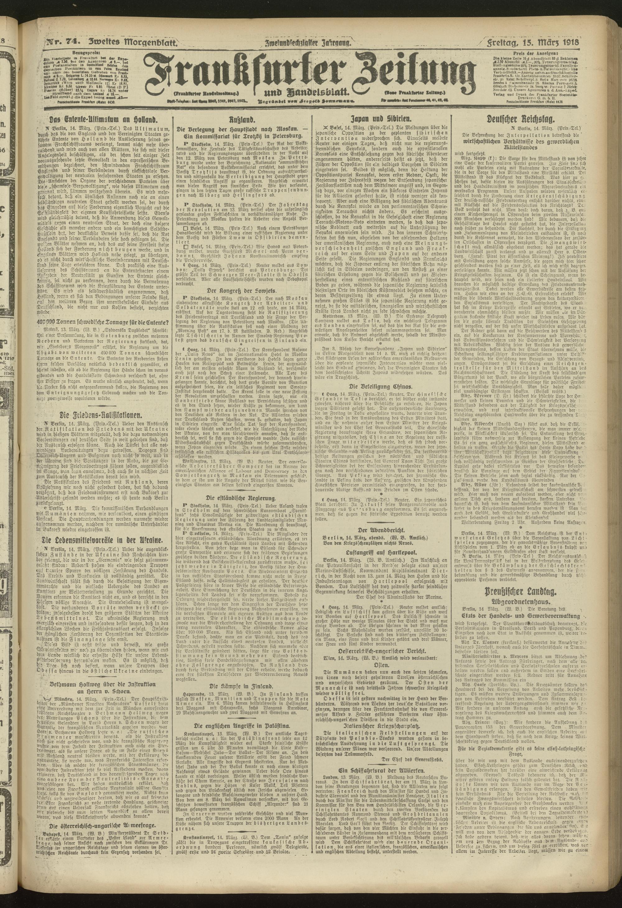 15.03.1918 = Nr. 74. Zweites Morgenblatt