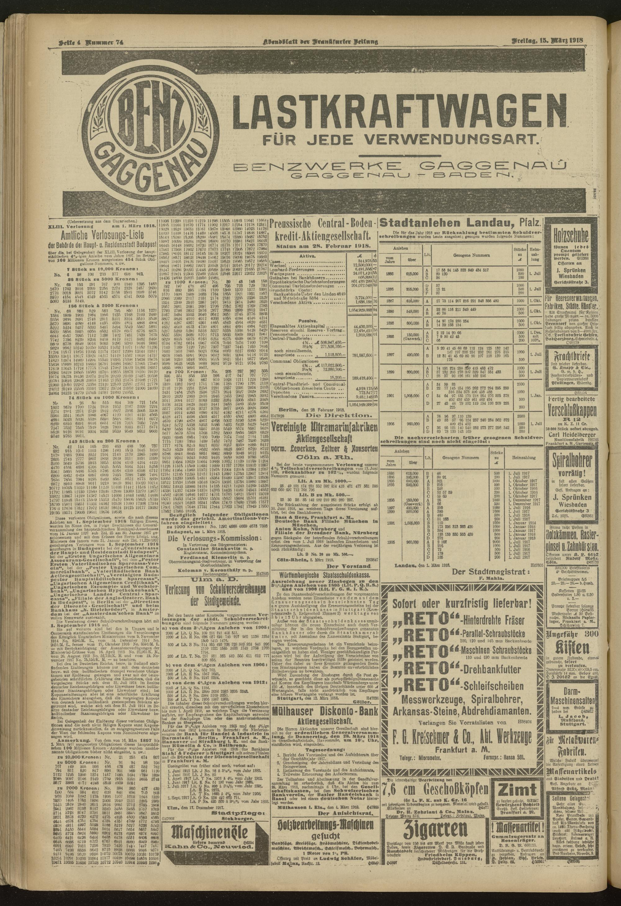 15.03.1918 = Nr. 74. Abendblatt