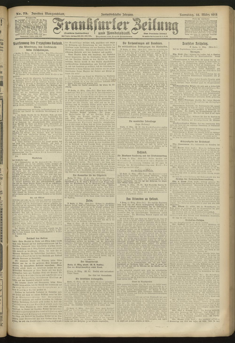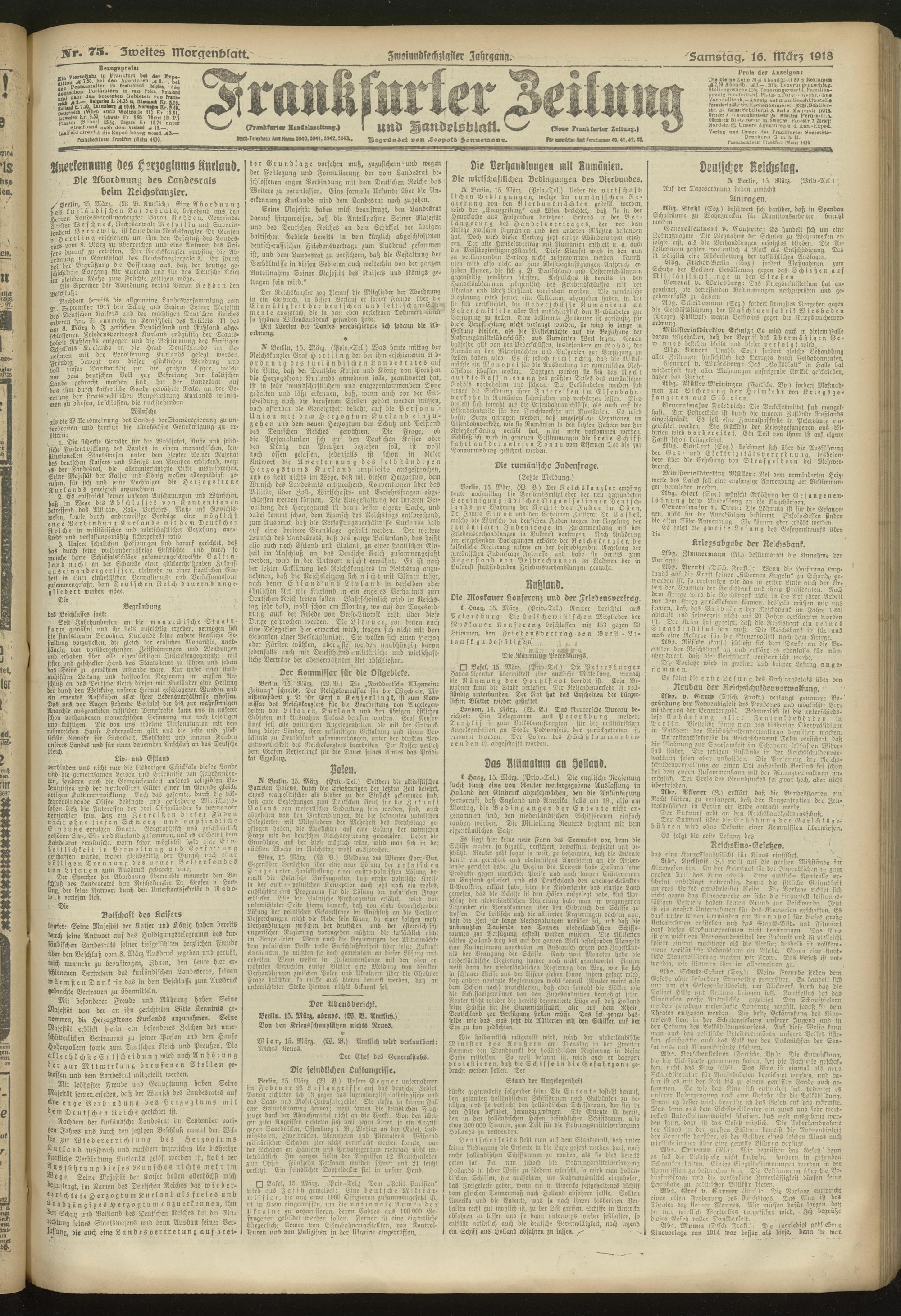16.03.1918 = Nr. 75. Zweites Morgenblatt