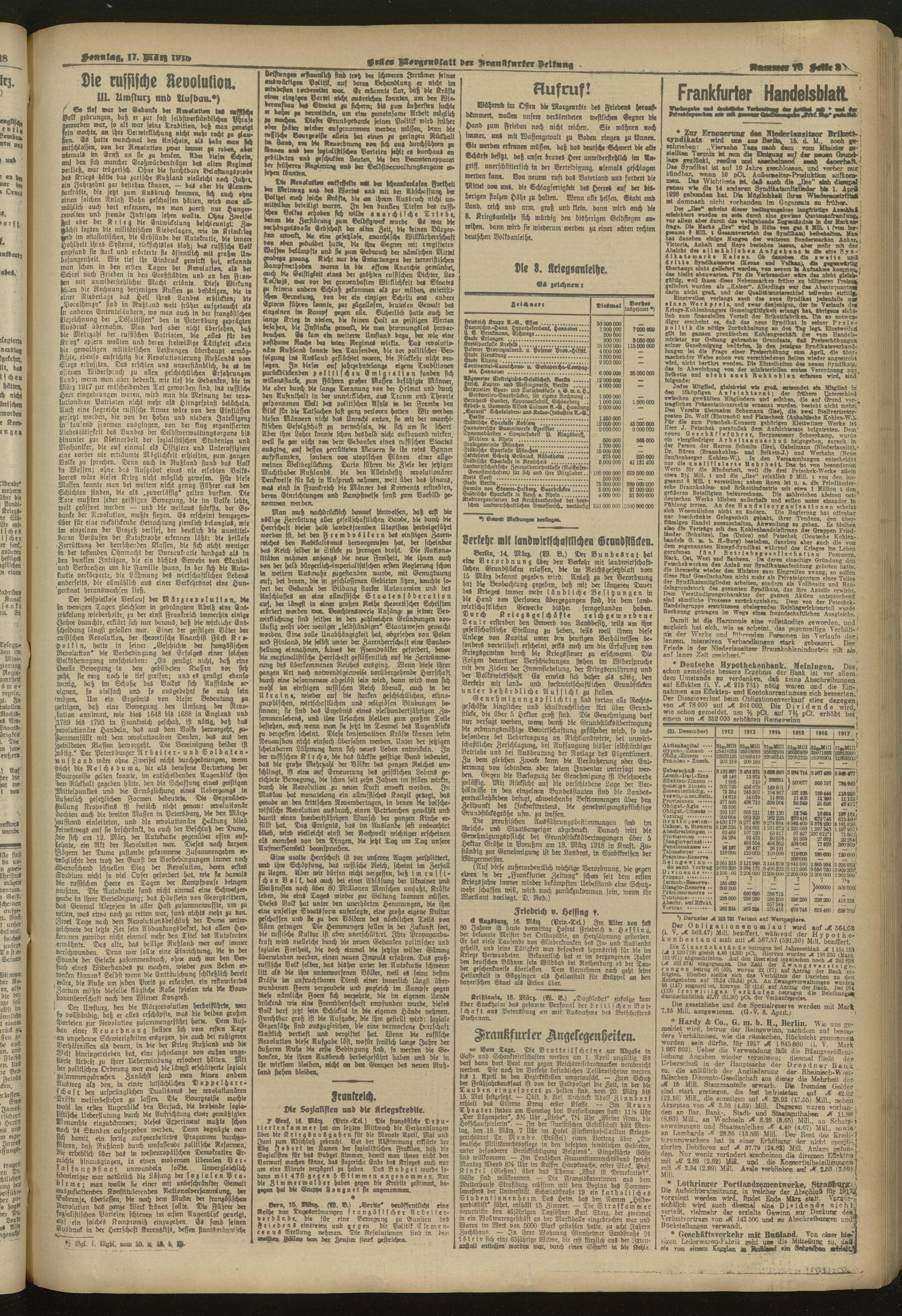 17.03.1918 = Nr. 76. Erstes Morgenblatt