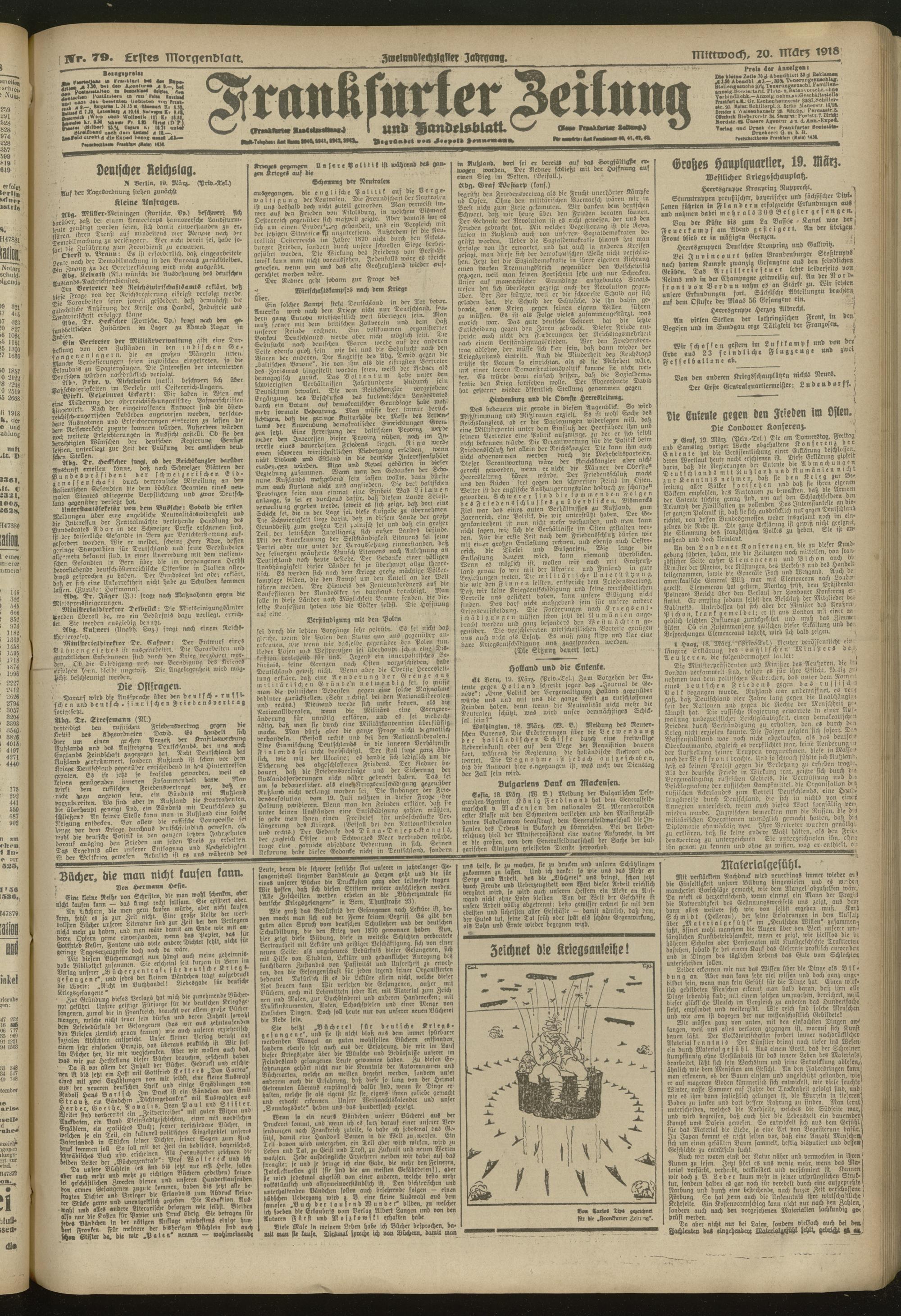 20.03.1918 = Nr. 79. Erstes Morgenblatt