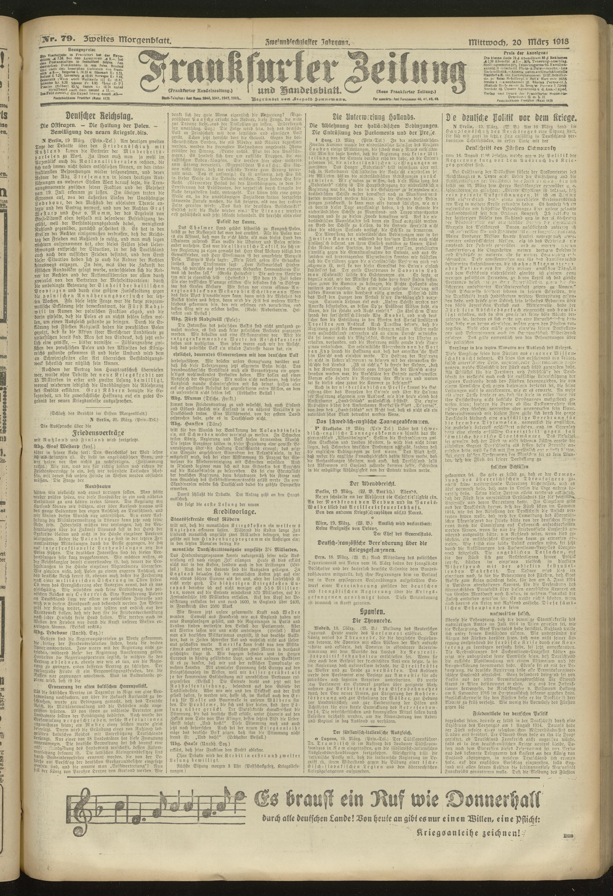 20.03.1918 = Nr. 79. Zweites Morgenblatt
