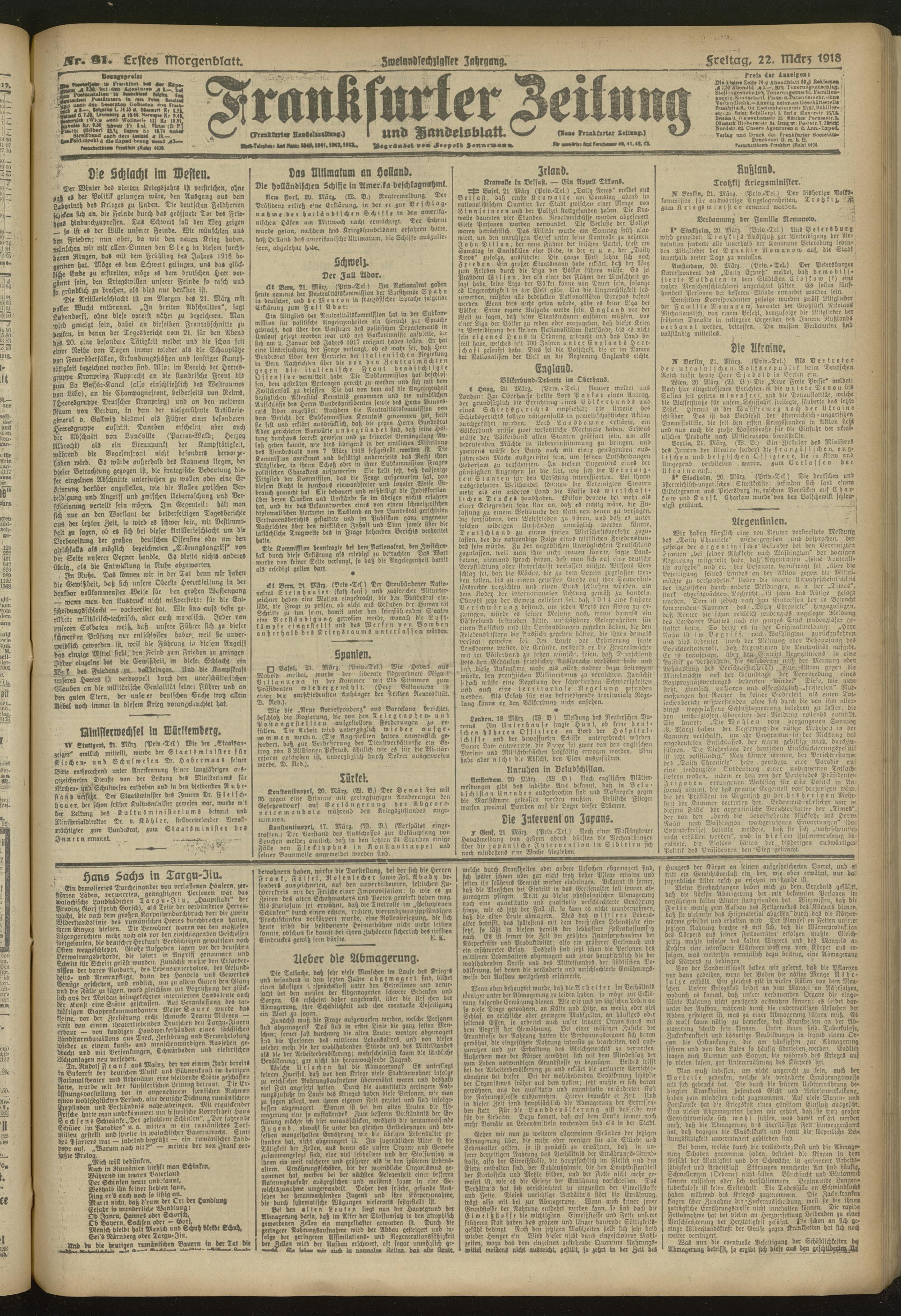 22.03.1918 = Nr. 81. Erstes Morgenblatt