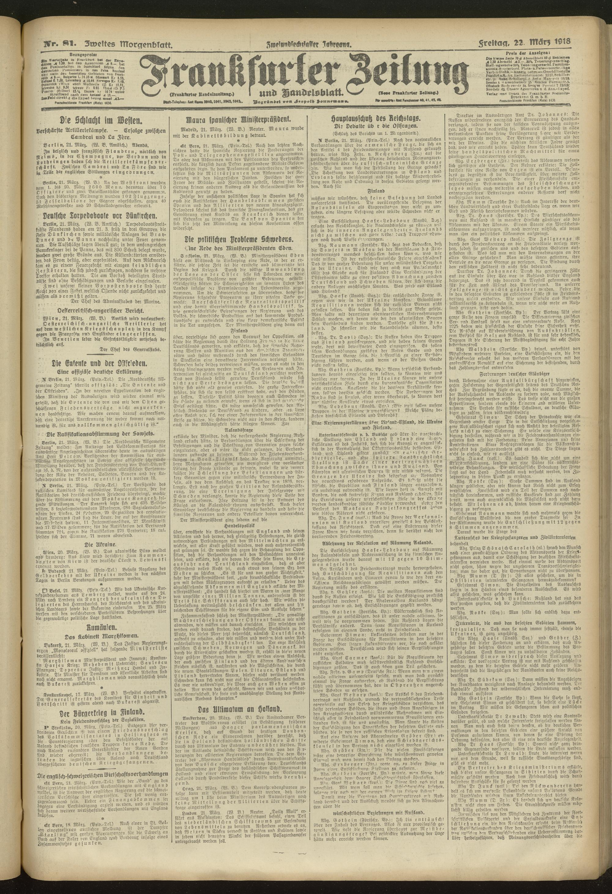 22.03.1918 = Nr. 81. Zweites Morgenblatt