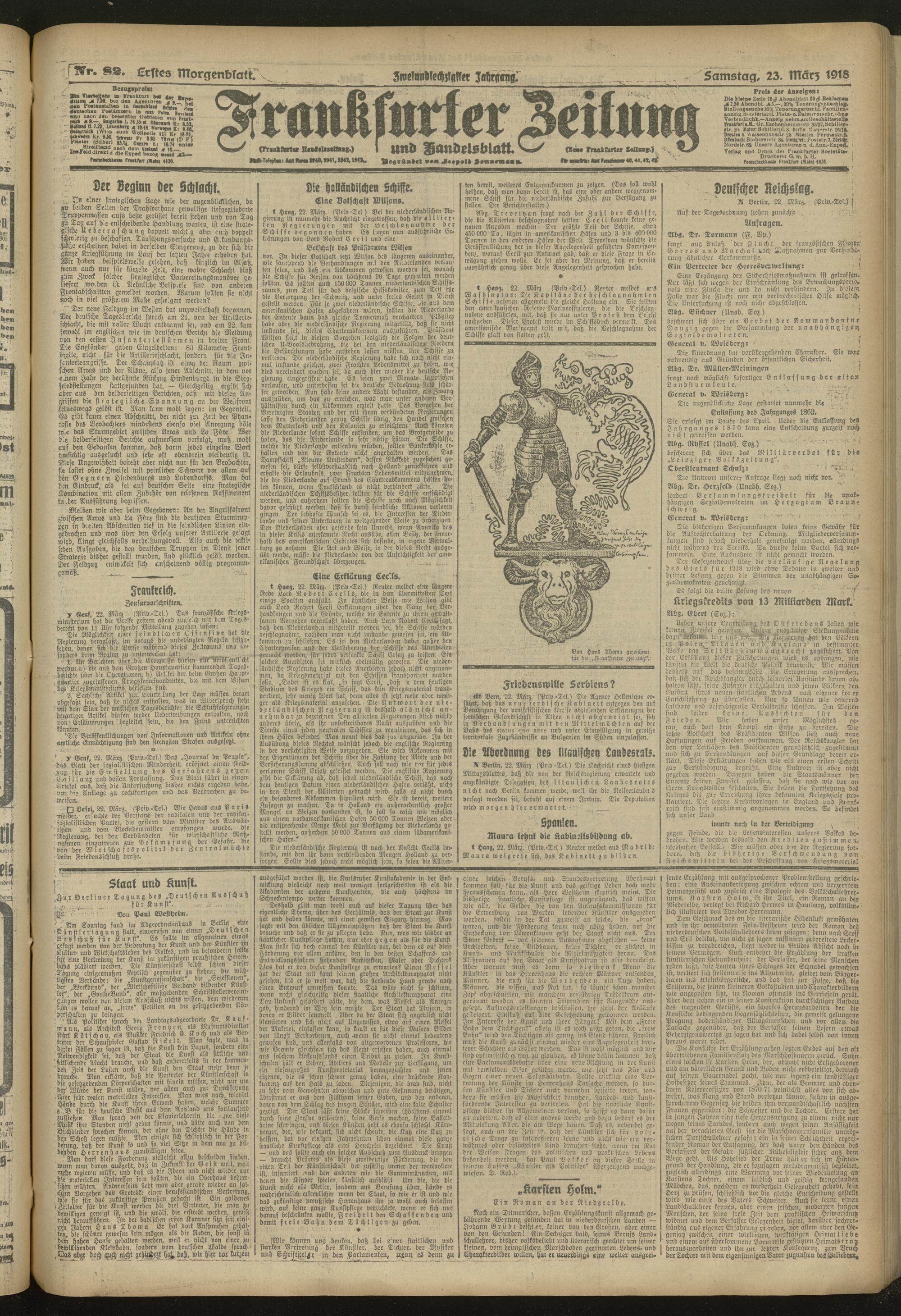 23.03.1918 = Nr. 82. Erstes Morgenblatt