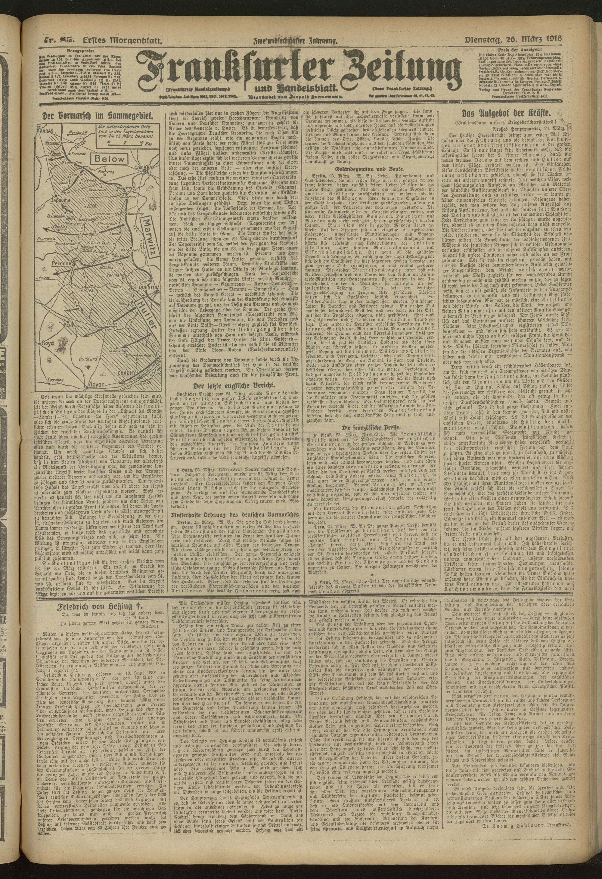 26.03.1918 = Nr. 85. Erstes Morgenblatt