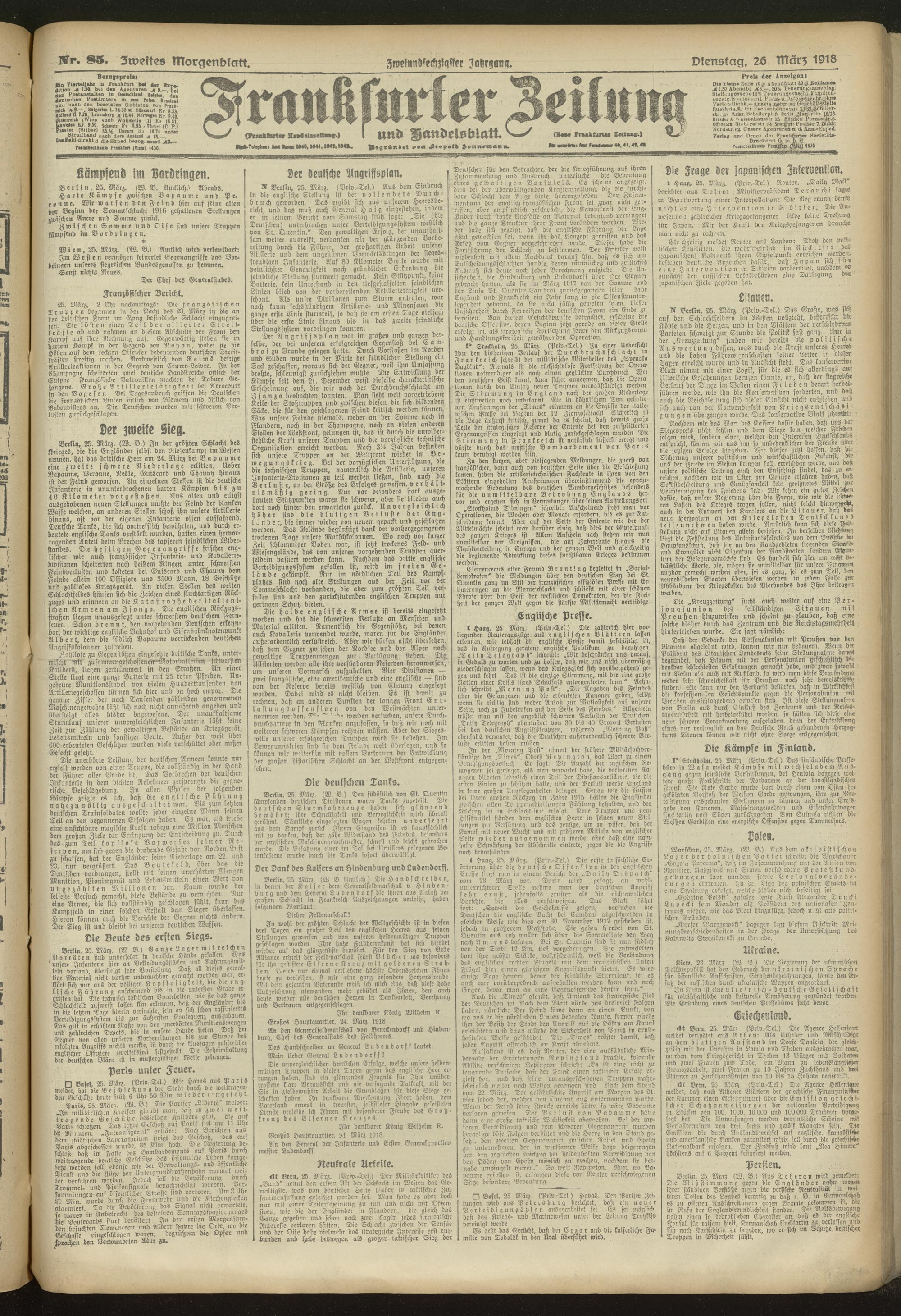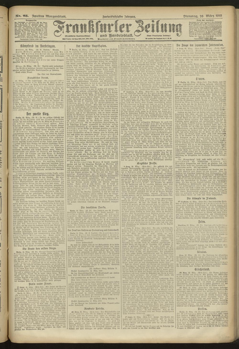 26.03.1918 = Nr. 85. Zweites Morgenblatt