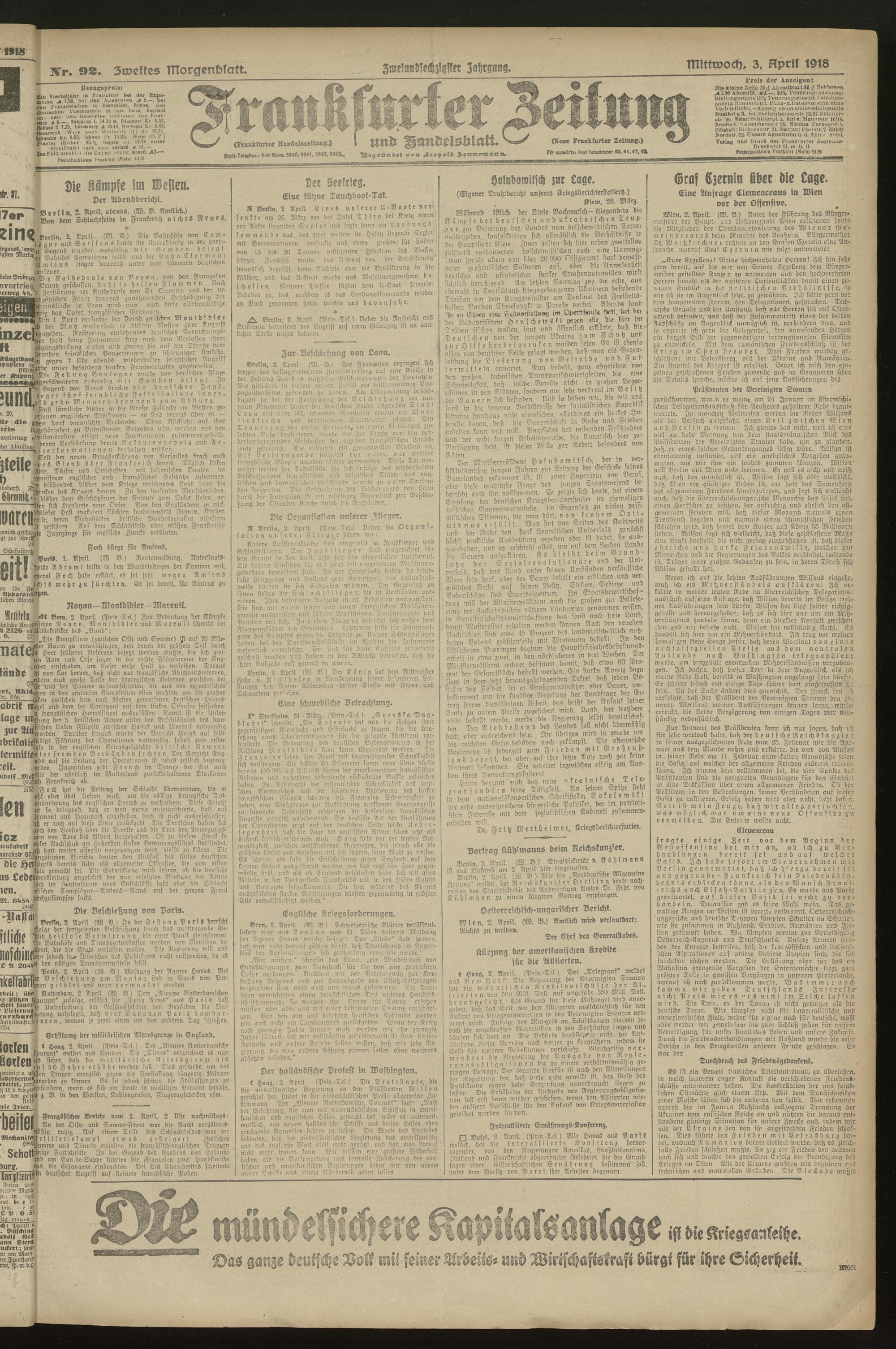 03.04.1918 = Nr. 92. Zweites Morgenblatt