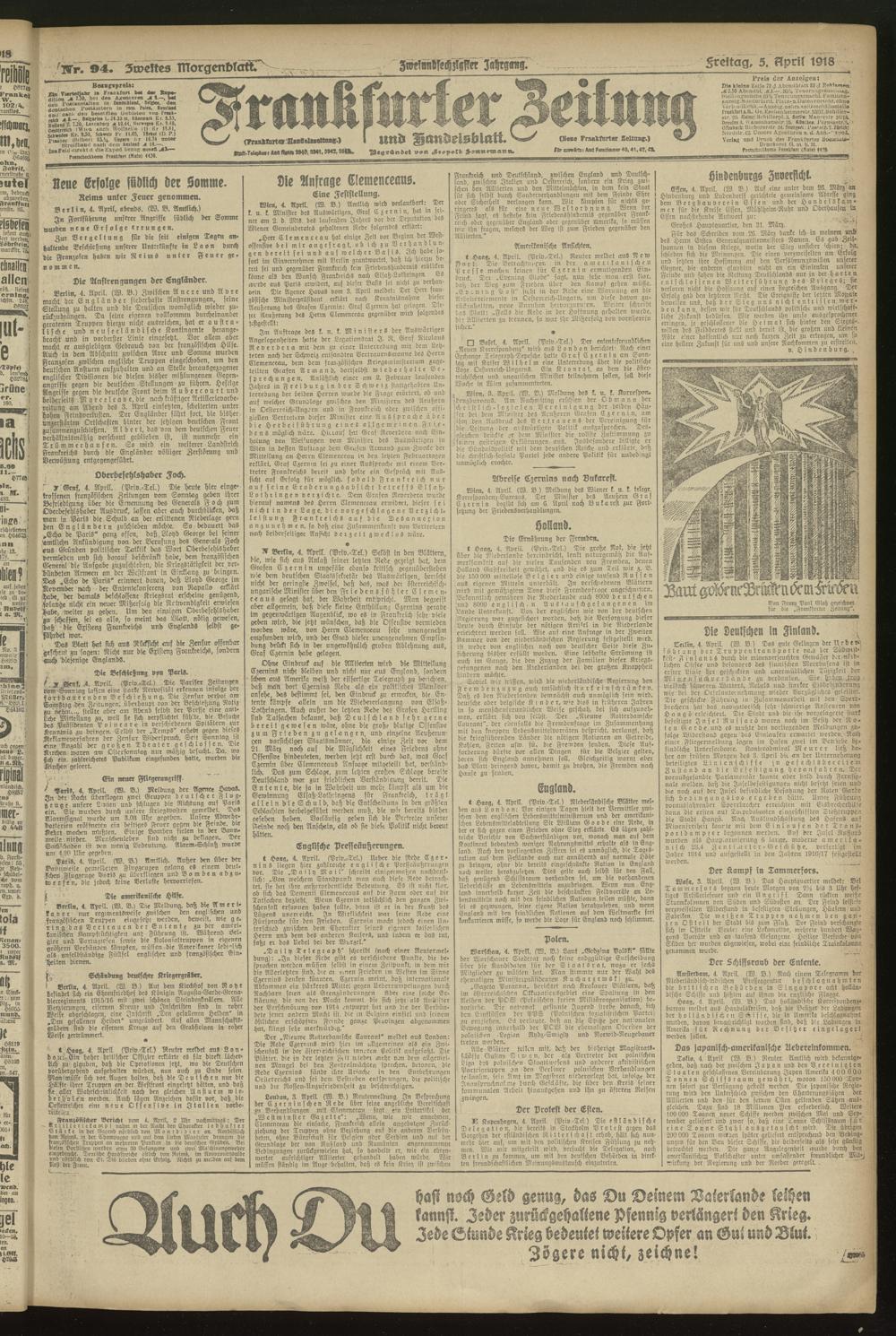 05.04.1918 = Nr. 94. Zweites Morgenblatt
