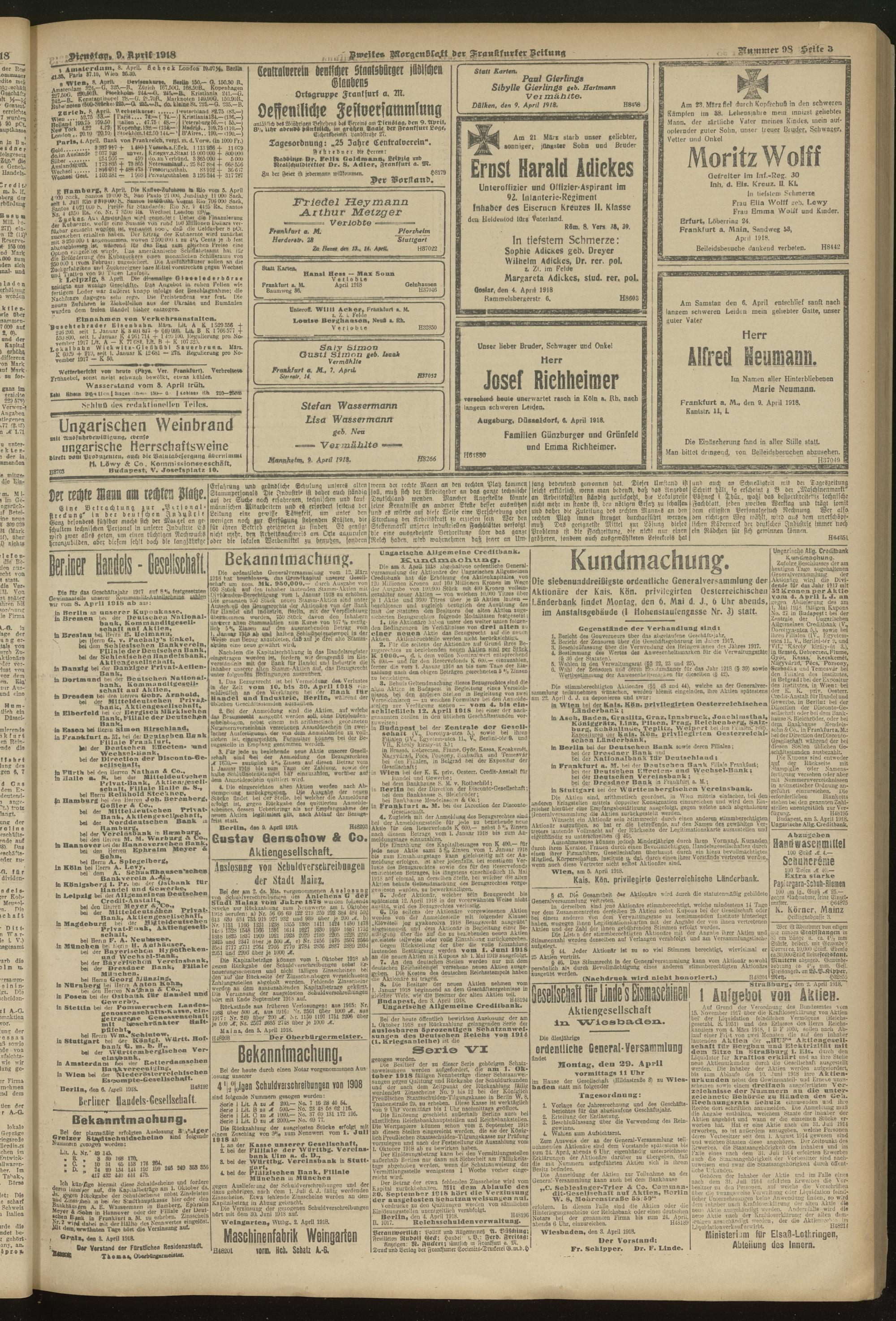 09.04.1918 = Nr. 98. Zweites Morgenblatt