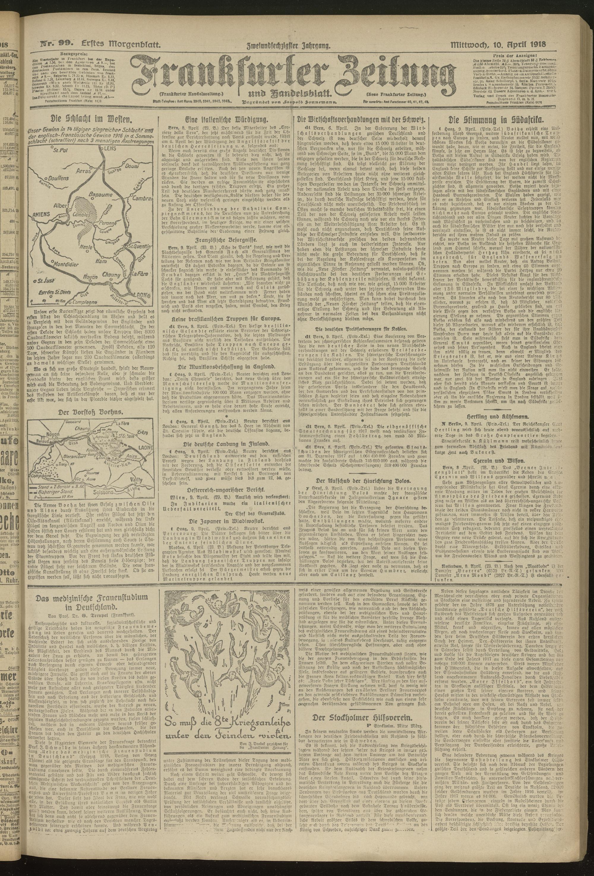 10.04.1918 = Nr. 99. Erstes Morgenblatt