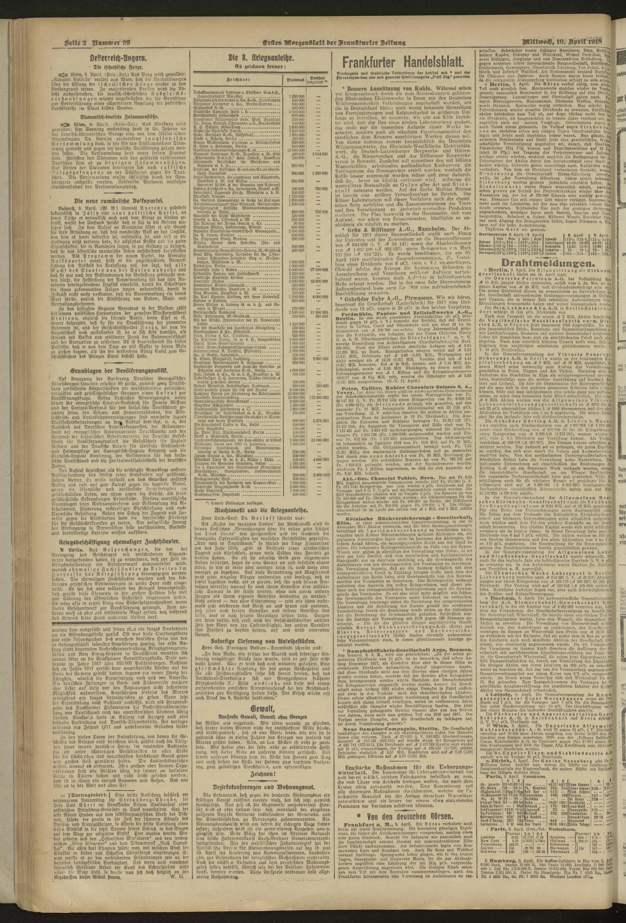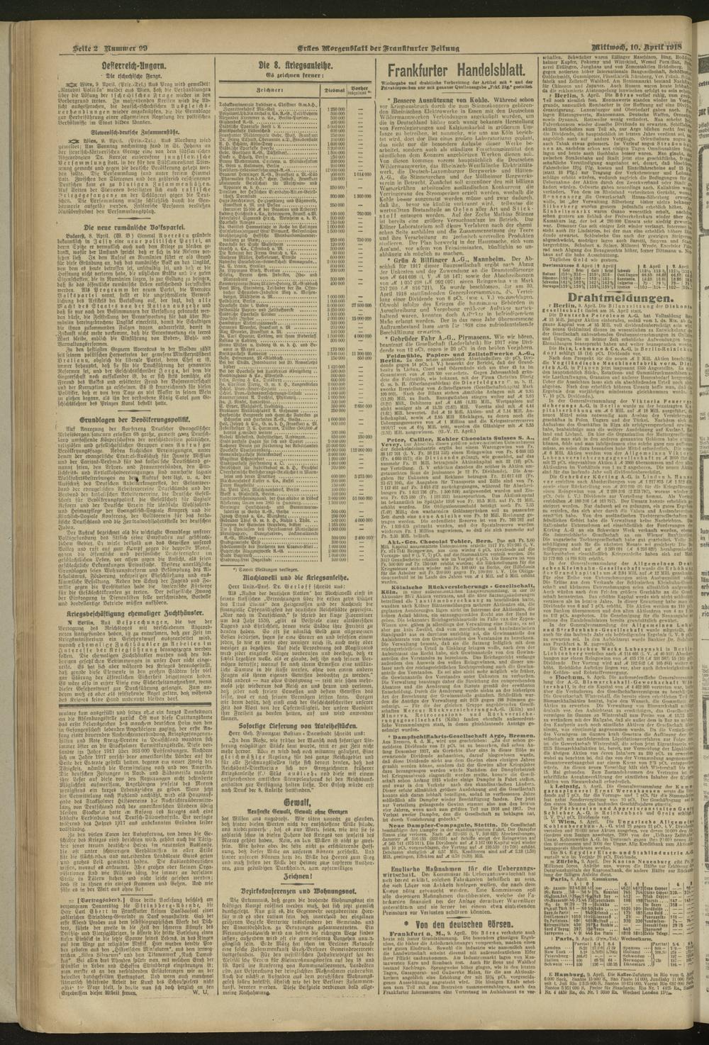 10.04.1918 = Nr. 99. Erstes Morgenblatt
