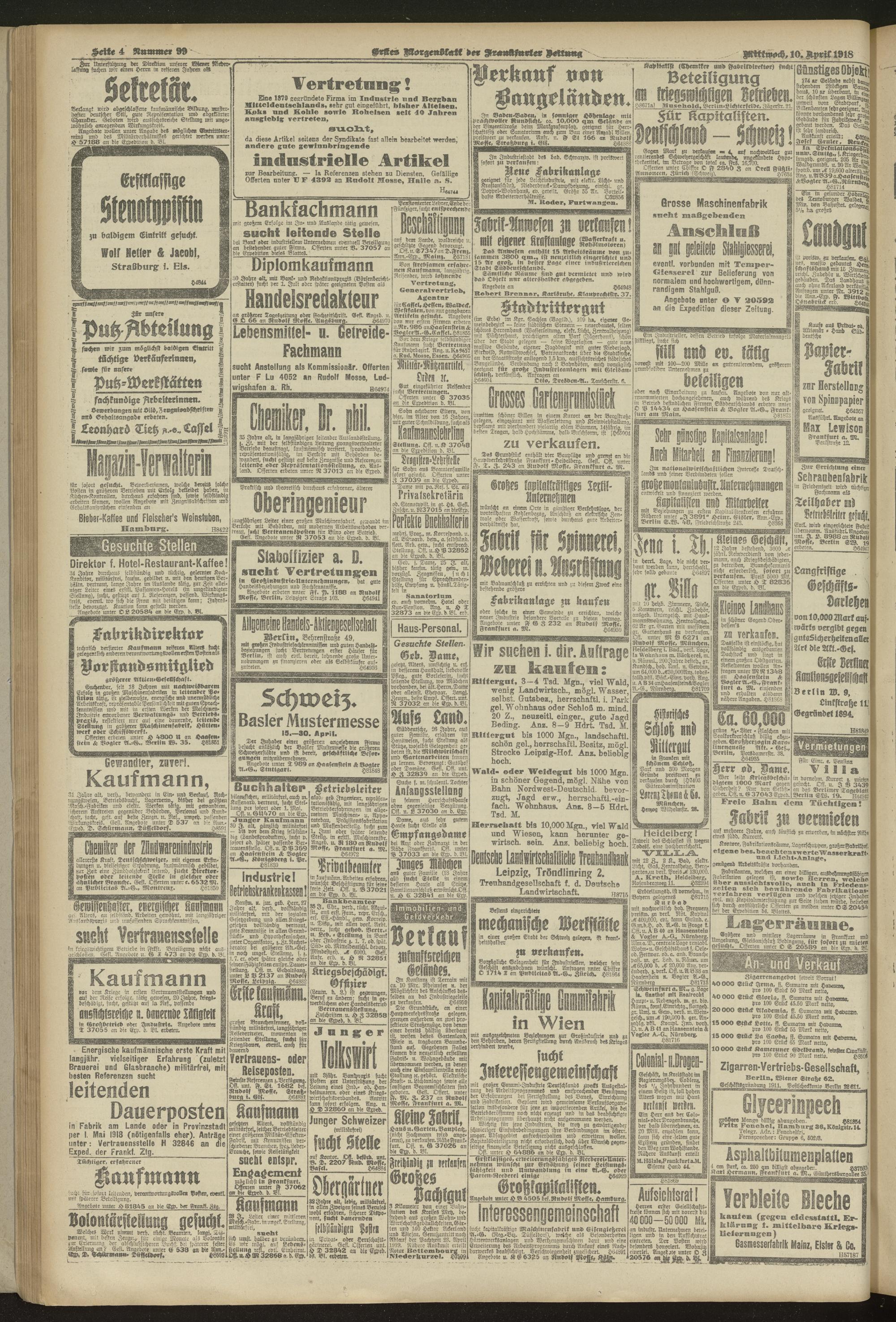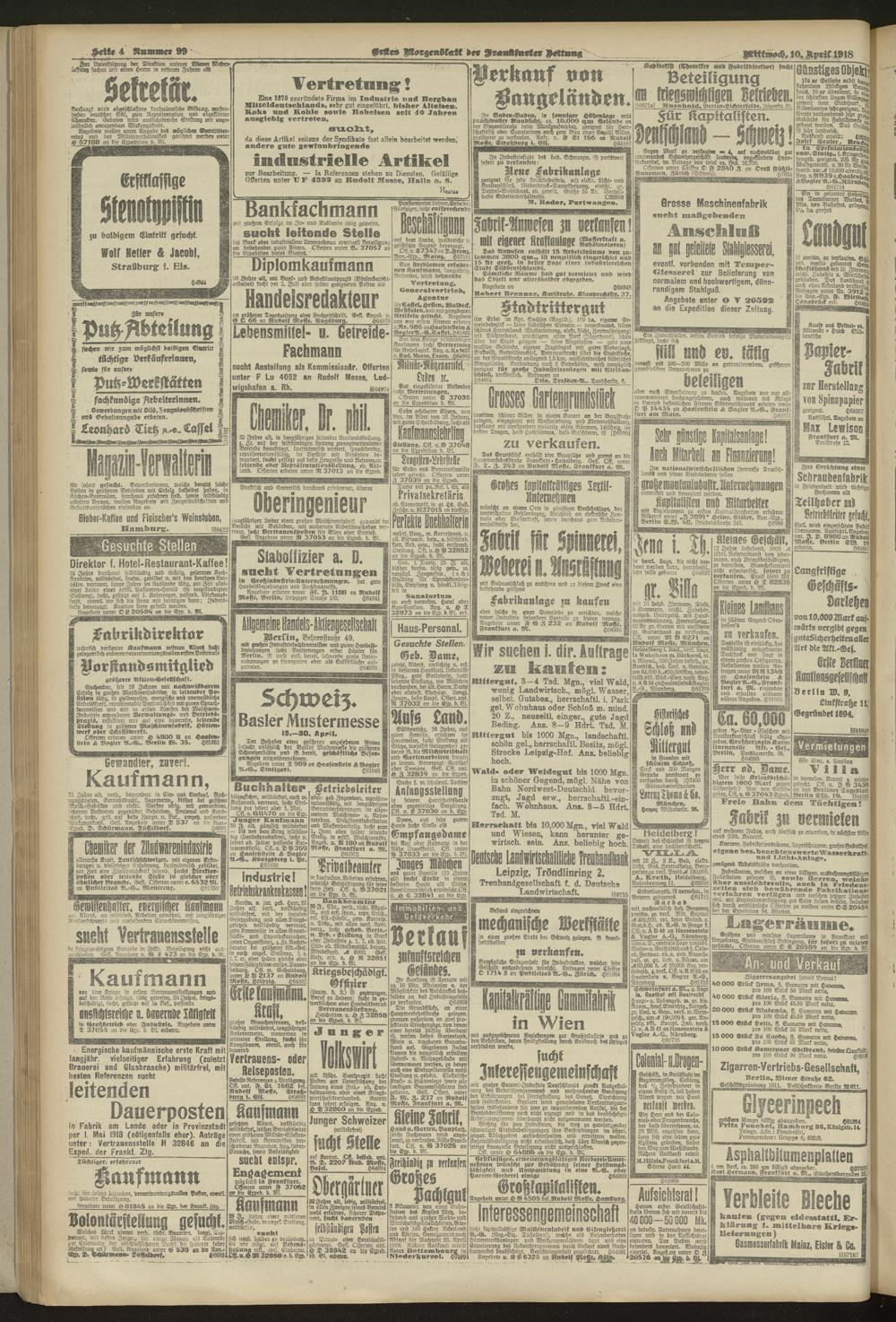 10.04.1918 = Nr. 99. Erstes Morgenblatt