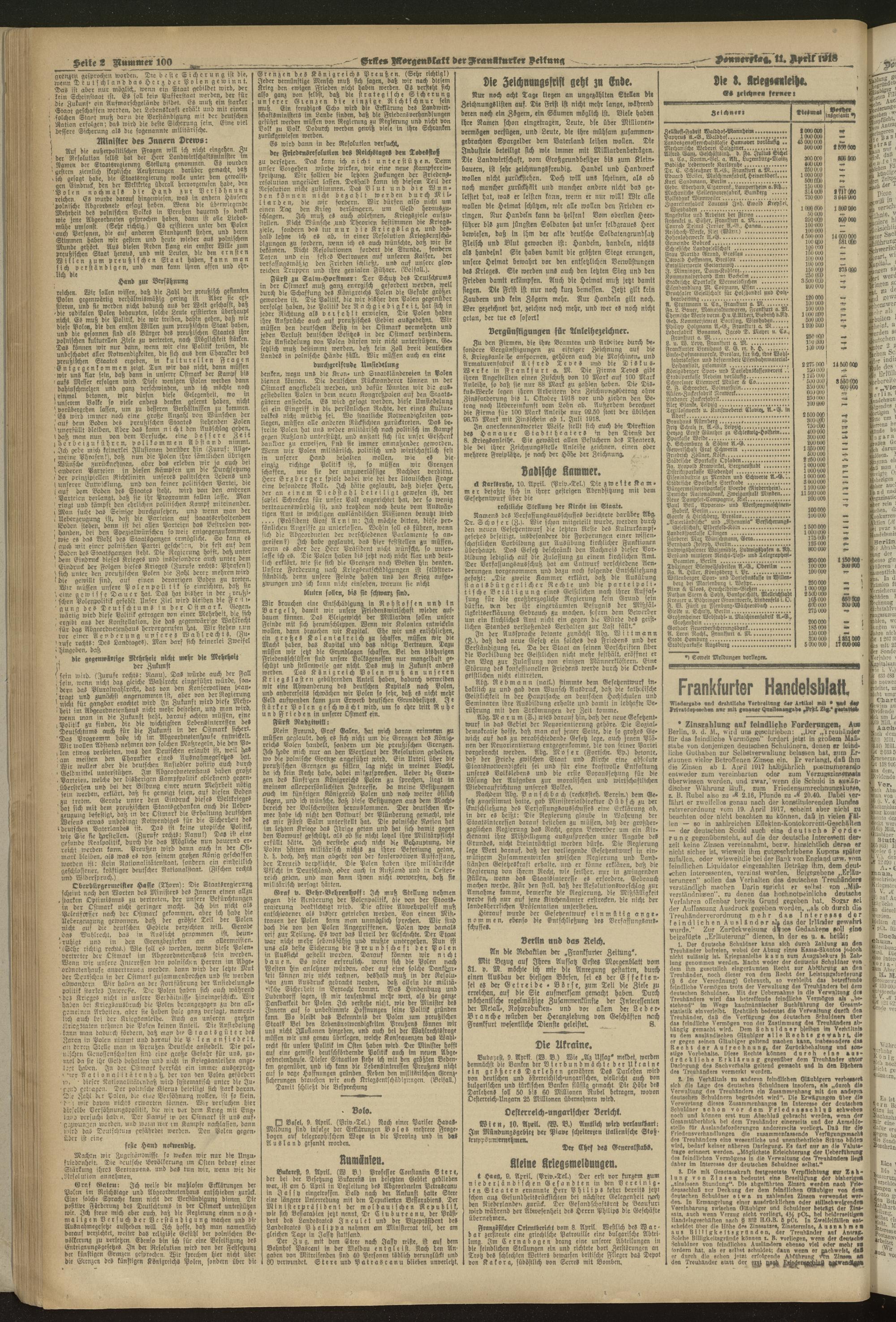 11.04.1918 = Nr. 100. Erstes Morgenblatt