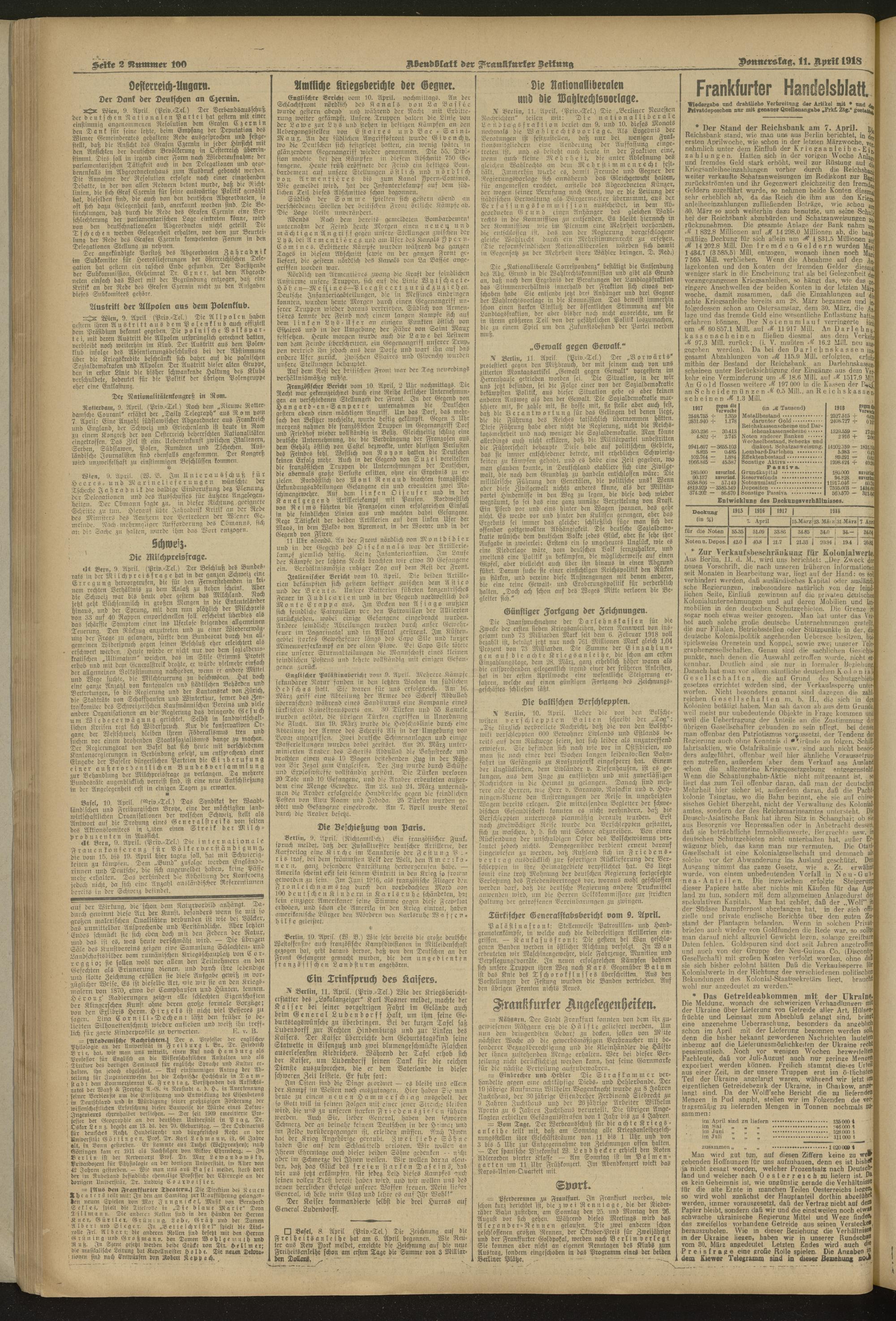 11.04.1918 = Nr. 100. Abendblatt