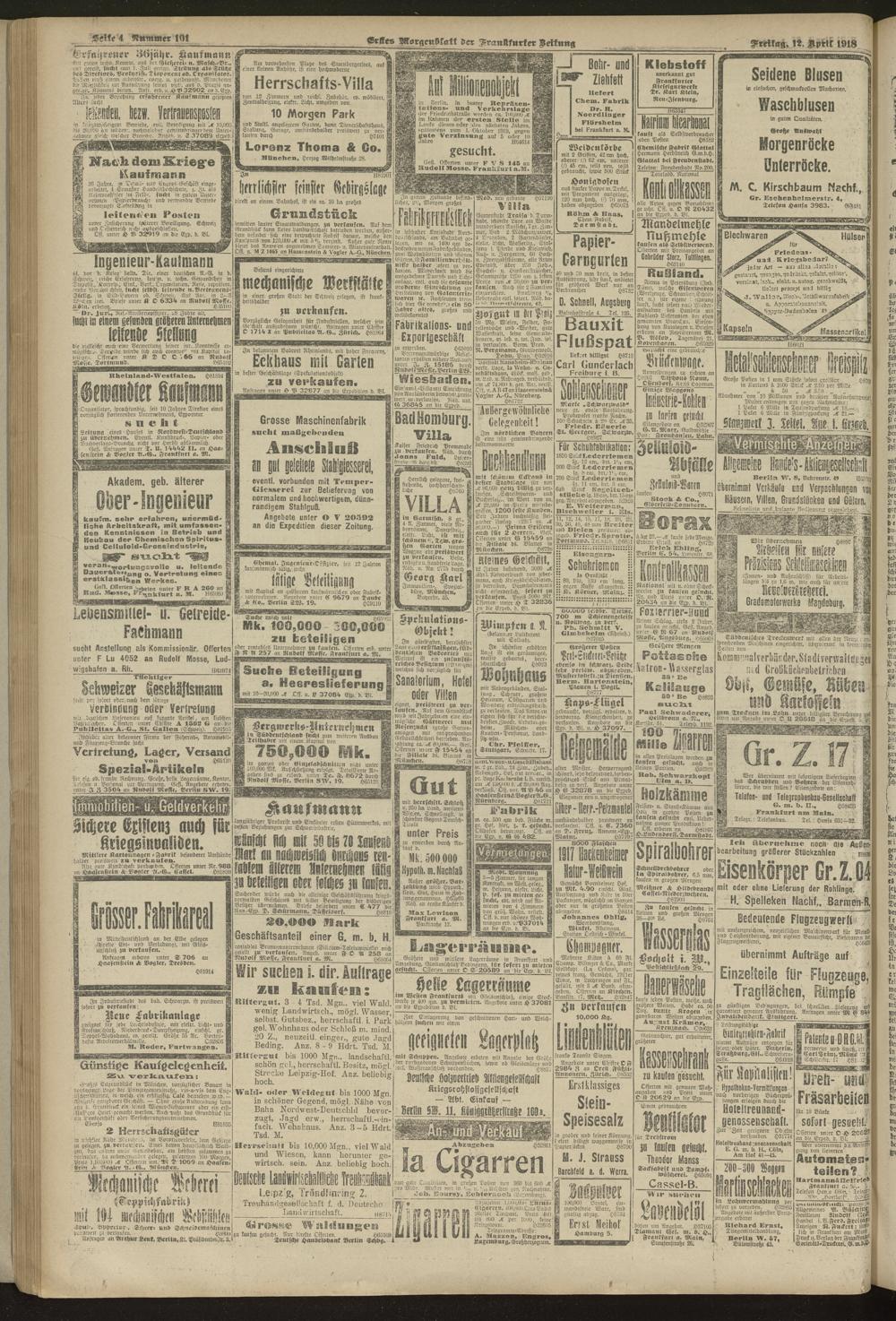 12.04.1918 = Nr. 101. Erstes Morgenblatt