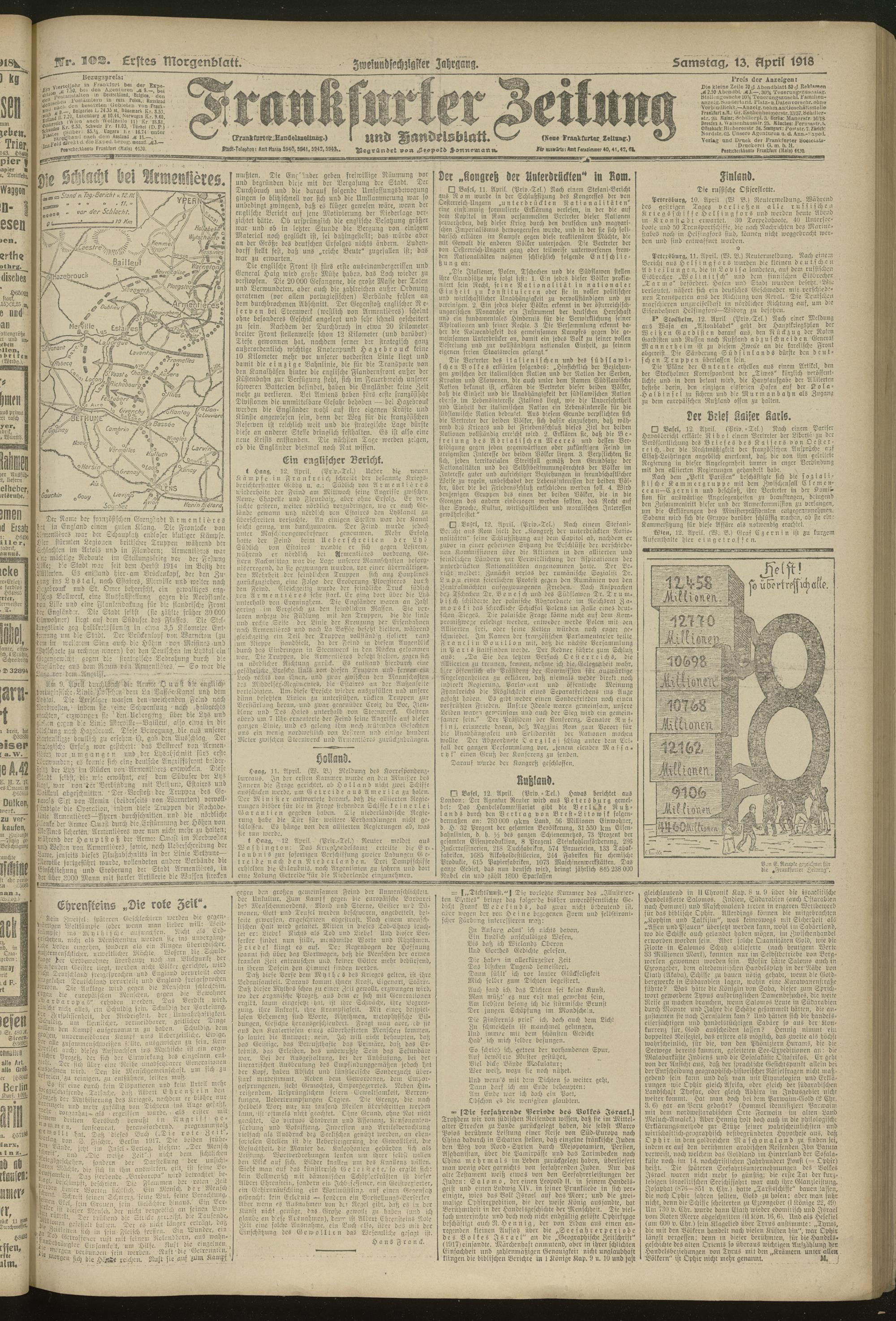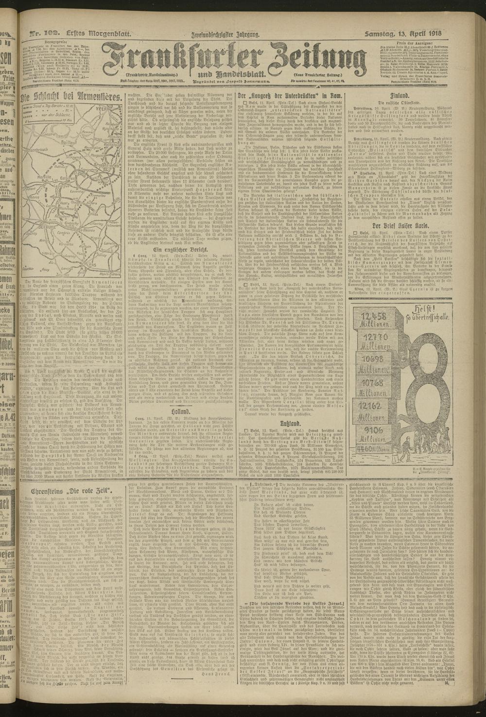 13.04.1918 = Nr. 102. Erstes Morgenblatt