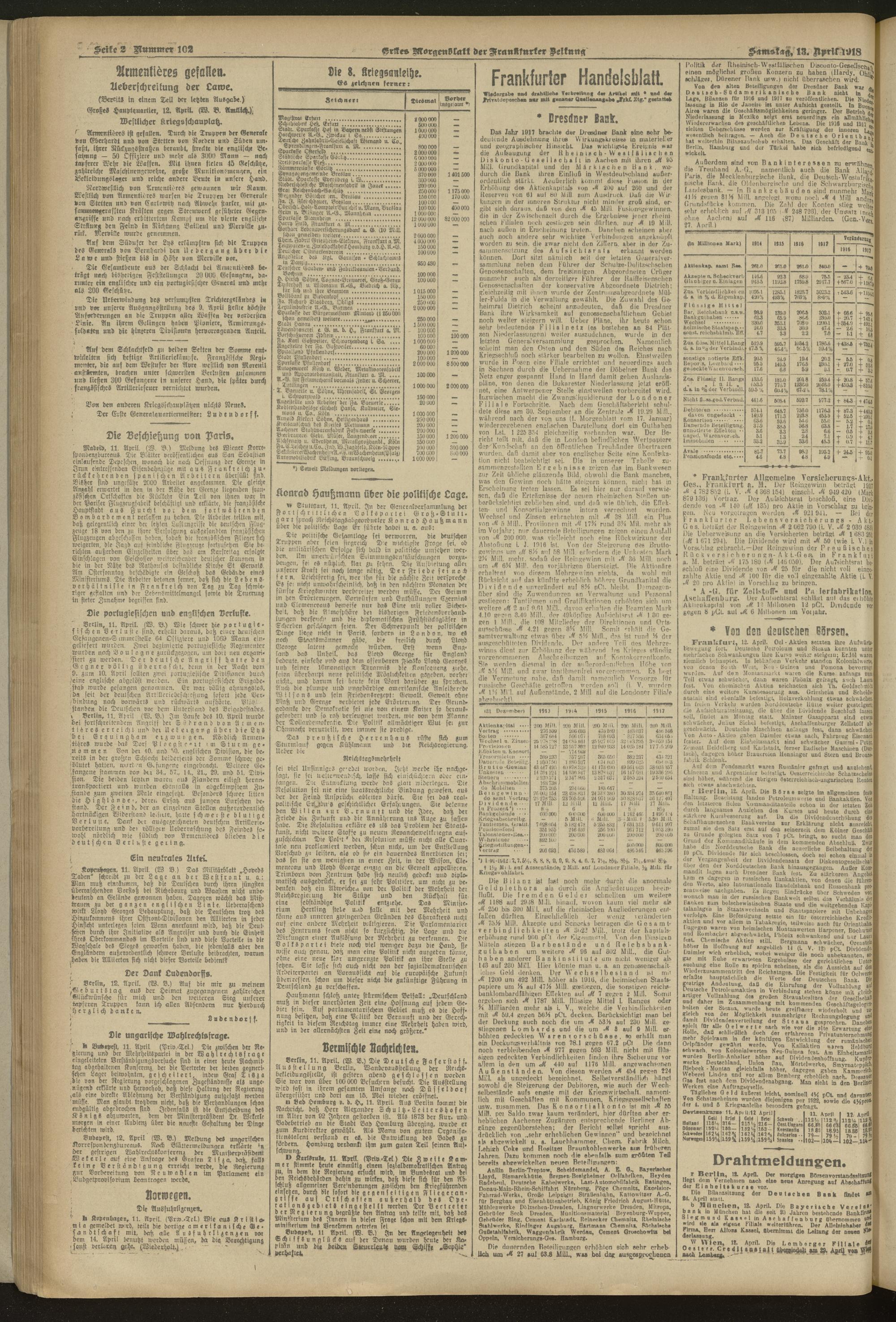 13.04.1918 = Nr. 102. Erstes Morgenblatt
