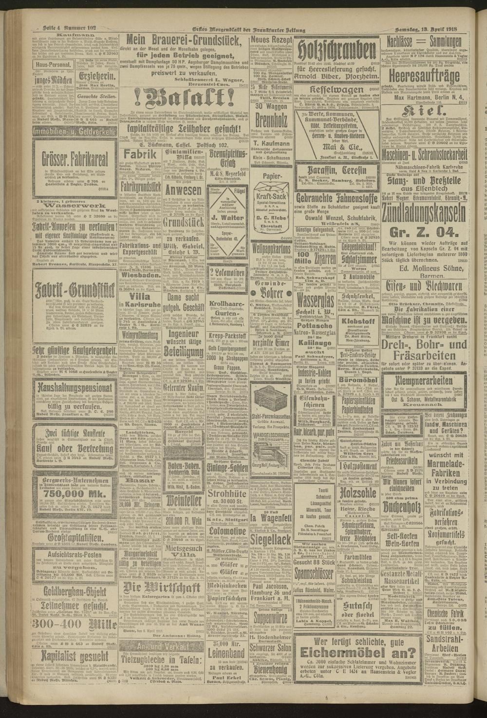 13.04.1918 = Nr. 102. Erstes Morgenblatt