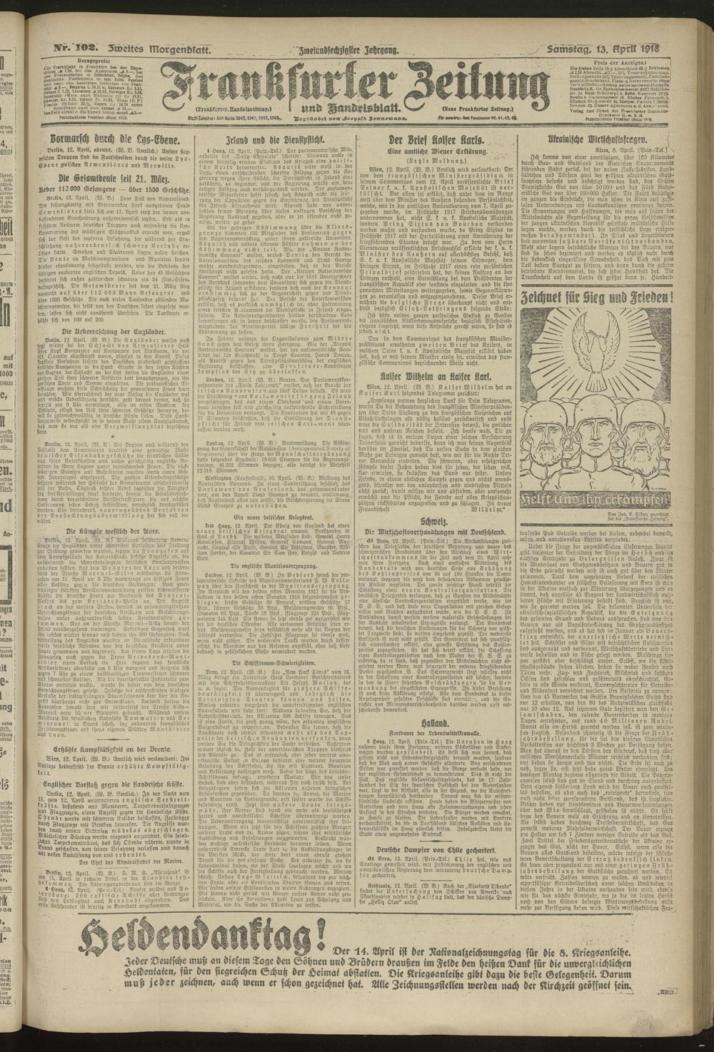 13.04.1918 = Nr. 102. Zweites Morgenblatt