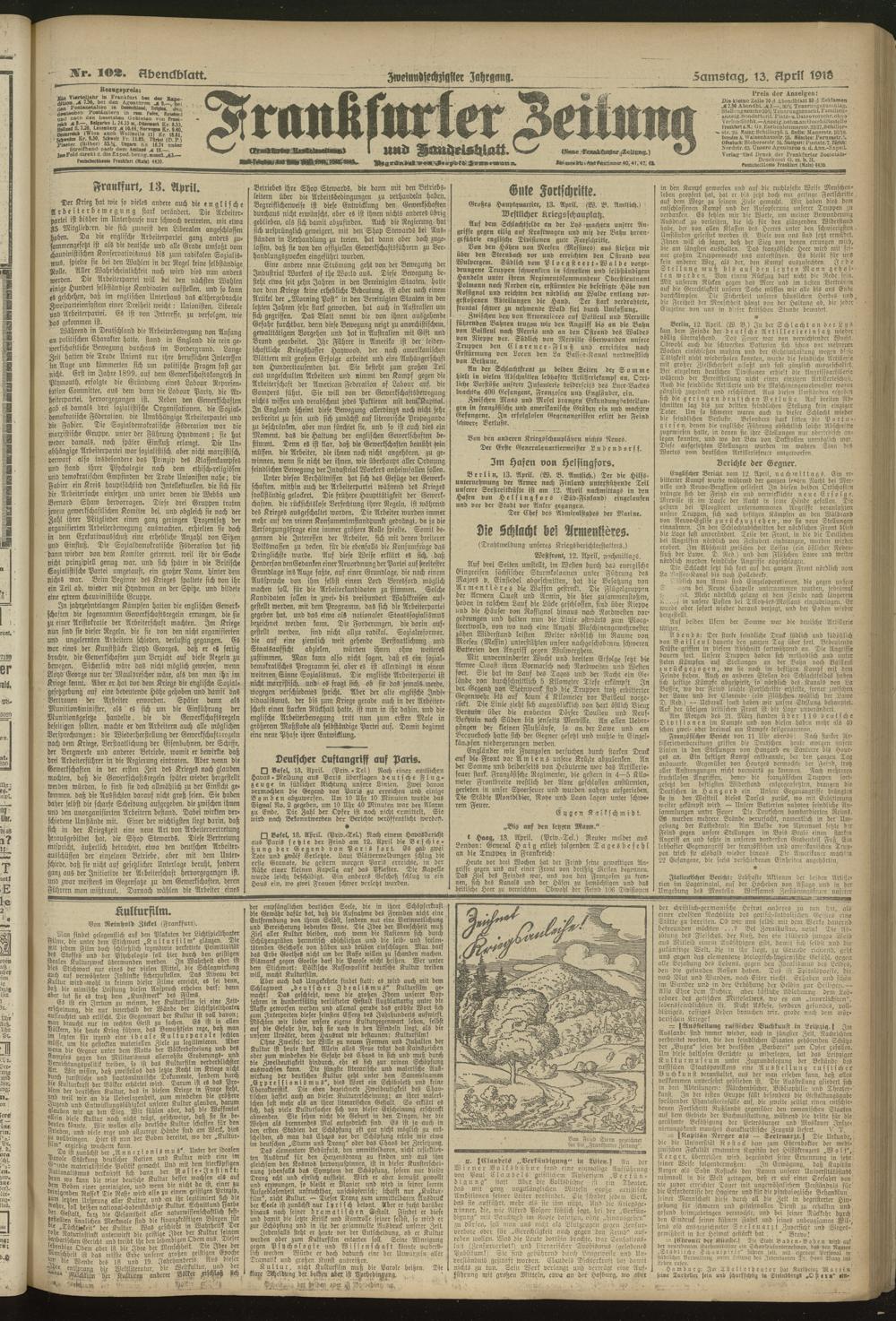 13.04.1918 = Nr. 102. Abendblatt