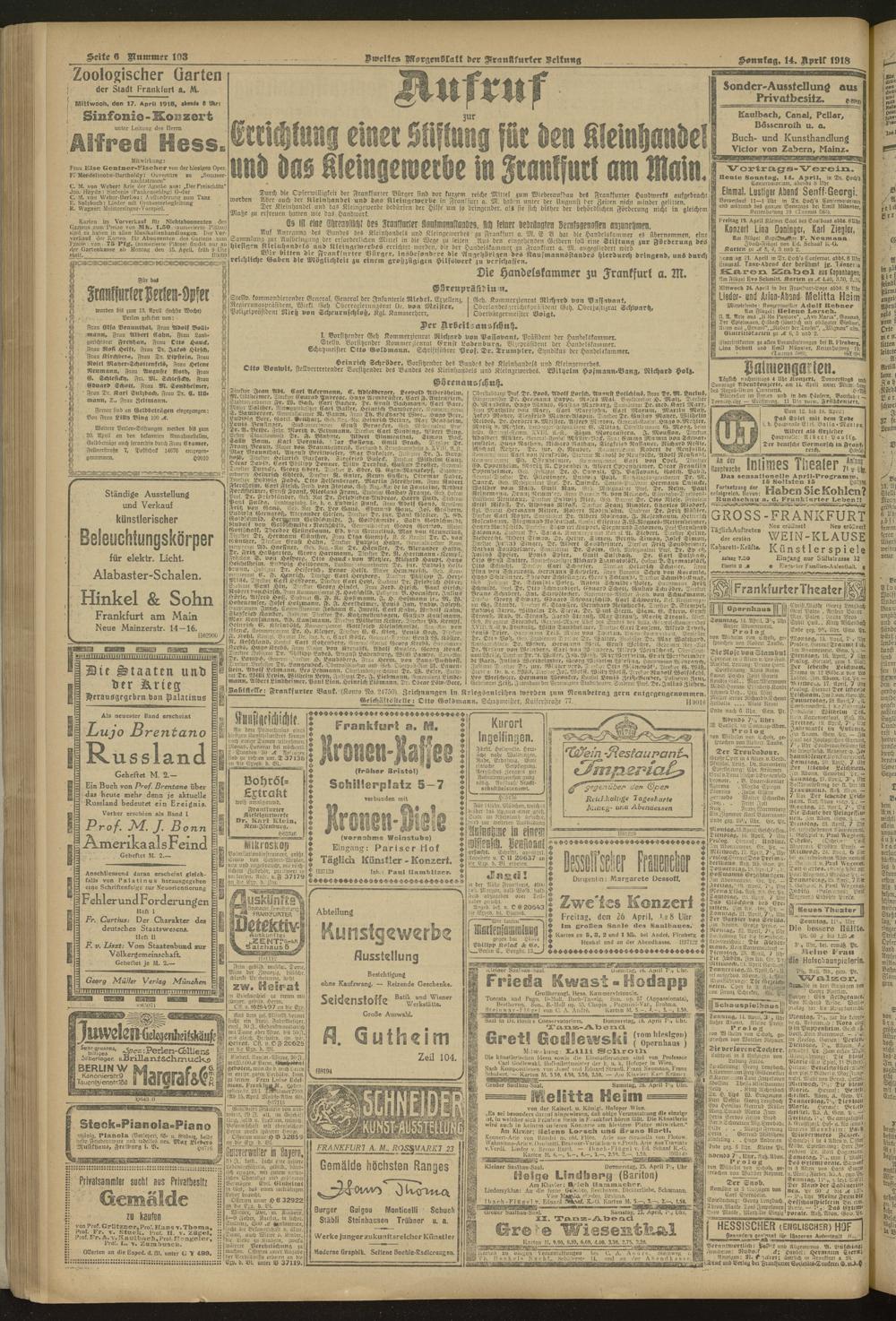 14.04.1918 = Nr. 103. Zweites Morgenblatt