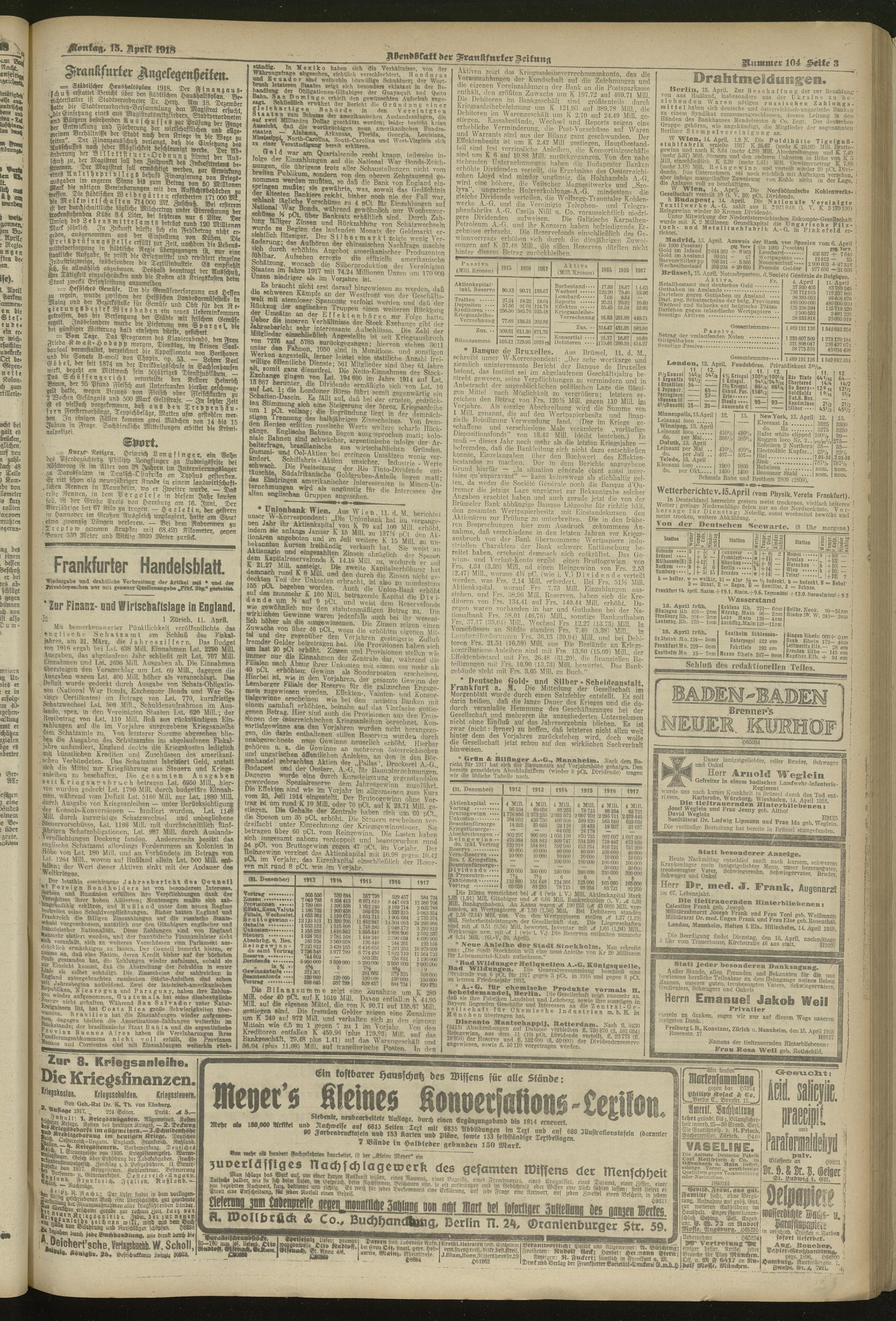 15.04.1918 = Nr. 104. Abendblatt