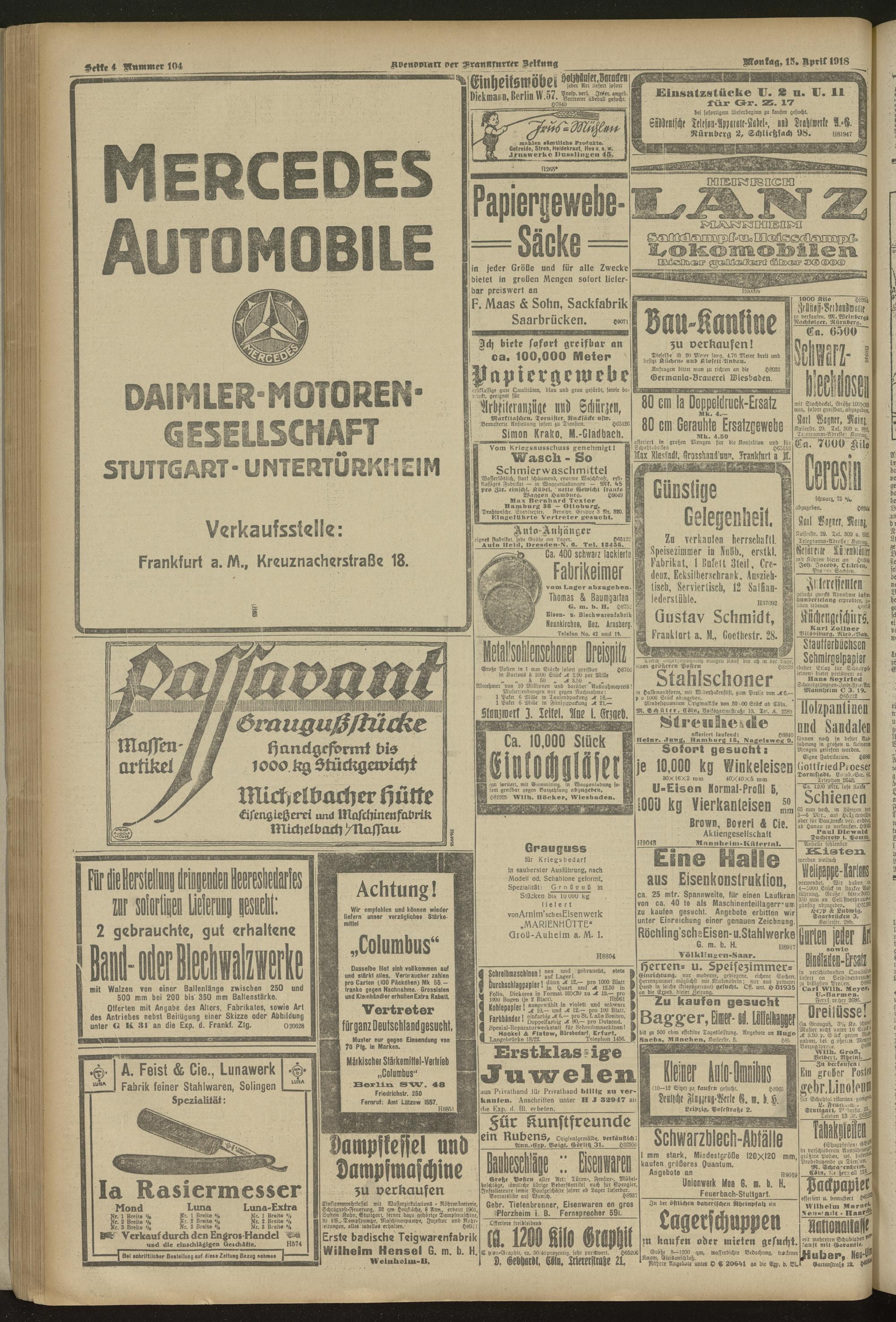 15.04.1918 = Nr. 104. Abendblatt