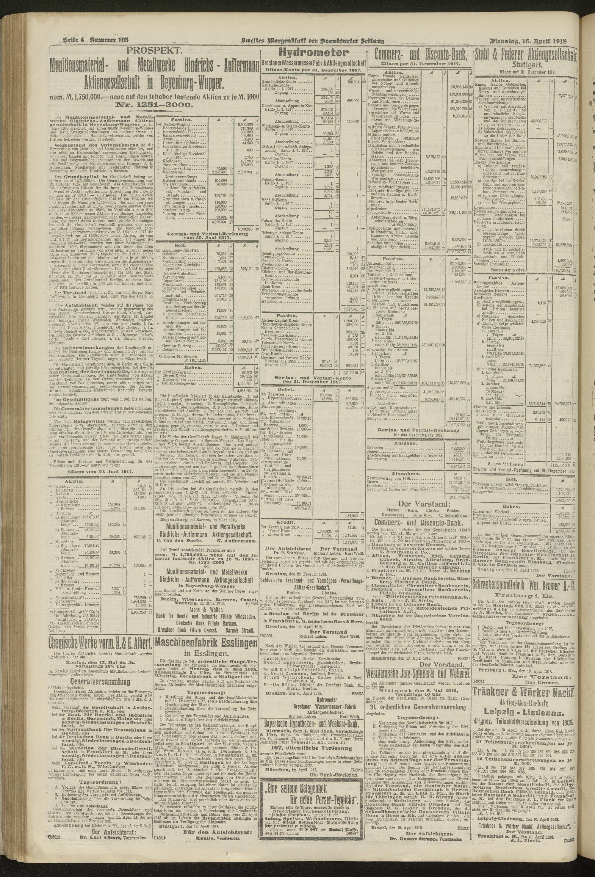 16.04.1918 = Nr. 105. Zweites Morgenblatt