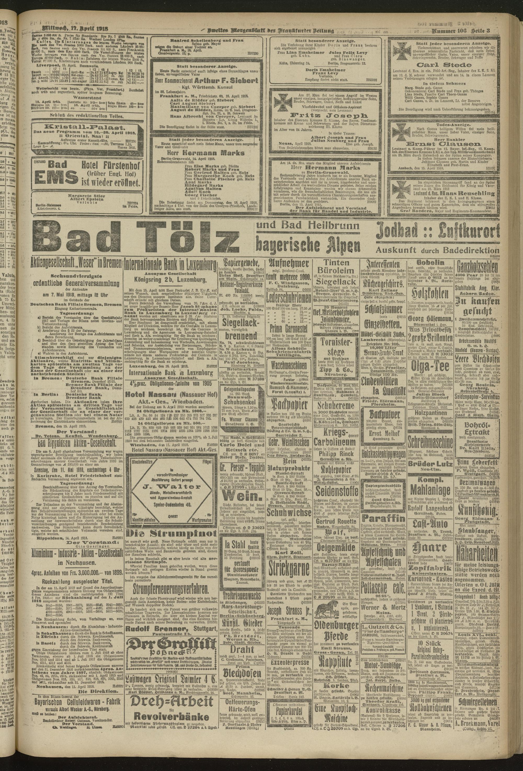 17.04.1918 = Nr. 106. Zweites Morgenblatt