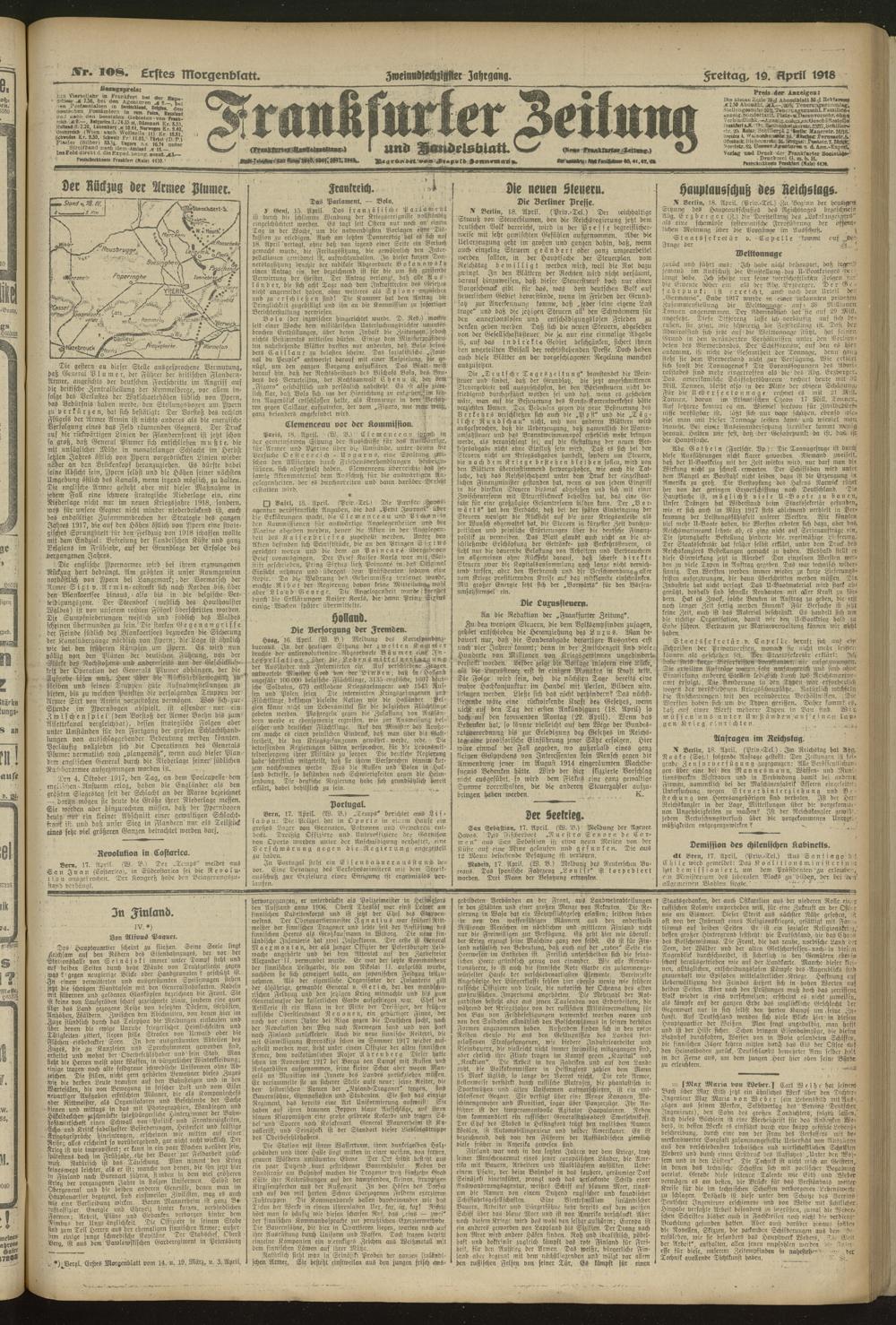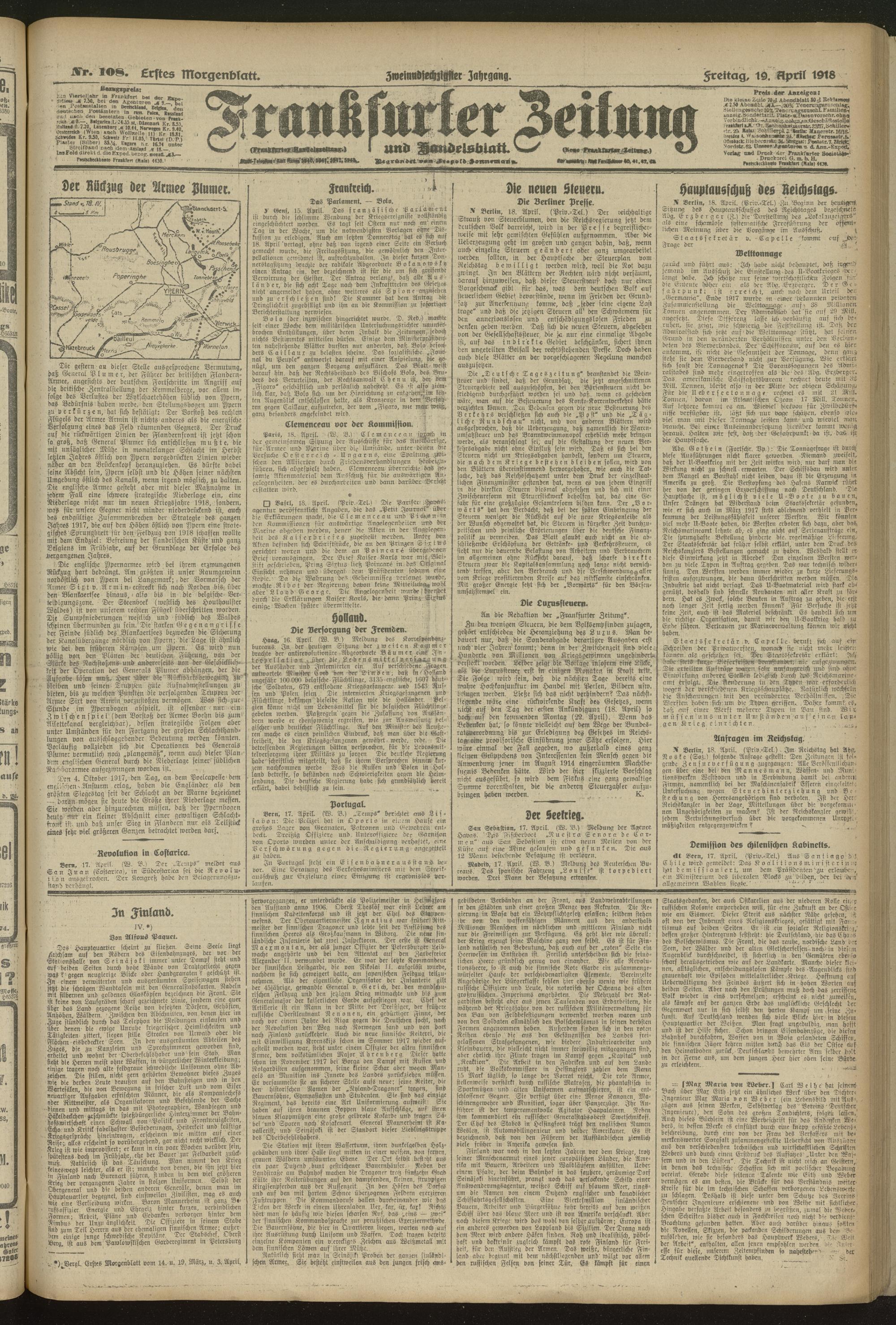 19.04.1918 = Nr. 108. Erstes Morgenblatt