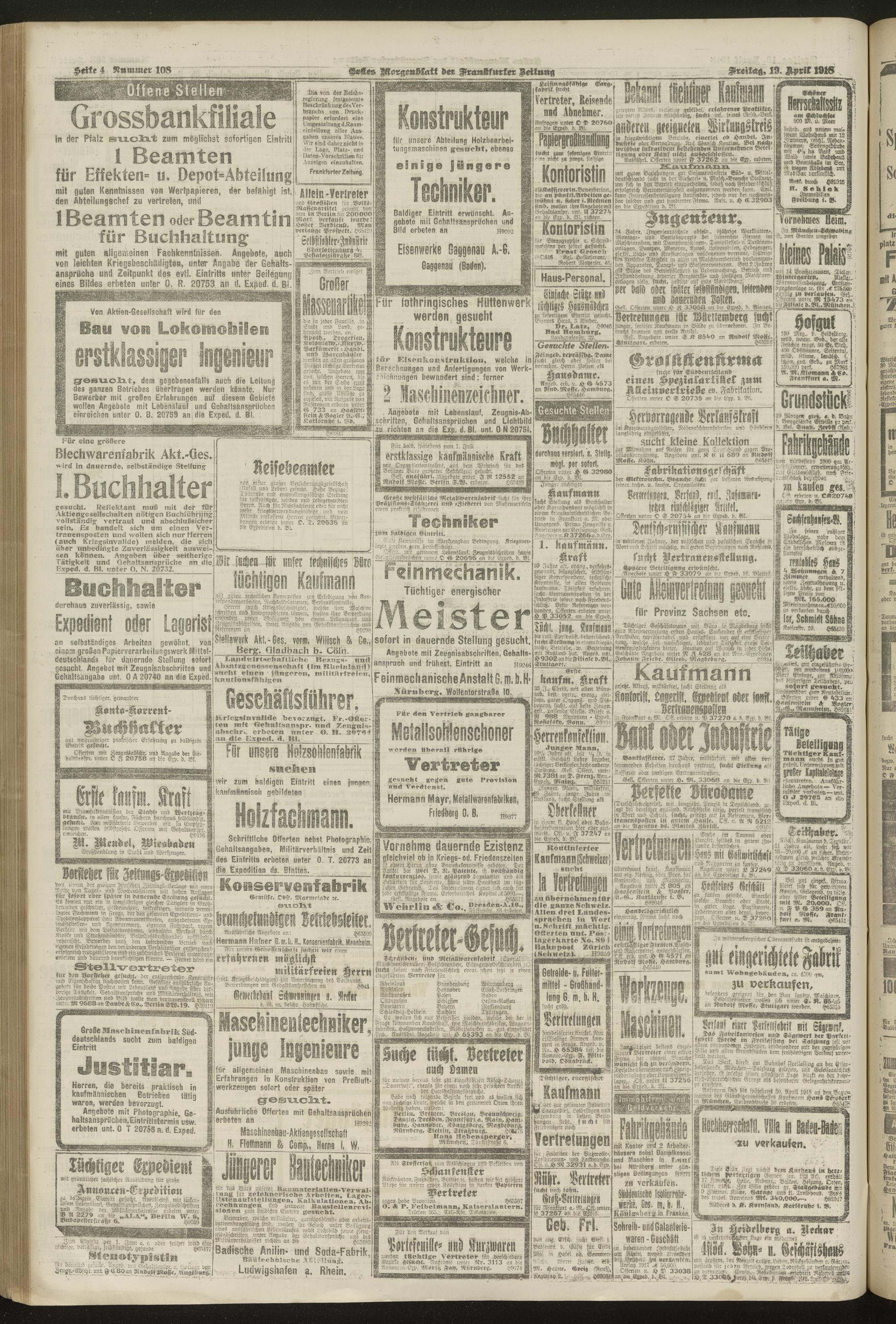 19.04.1918 = Nr. 108. Erstes Morgenblatt