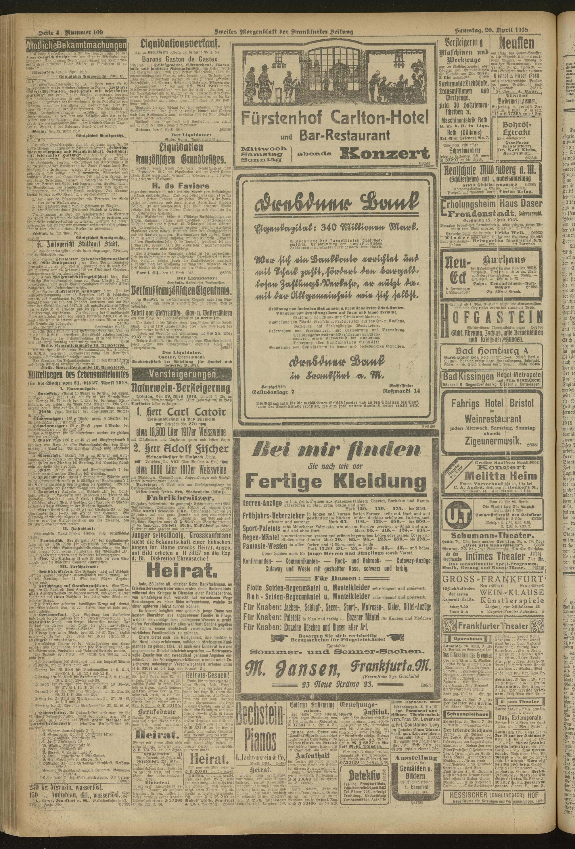 20.04.1918 = Nr. 109. Zweites Morgenblatt