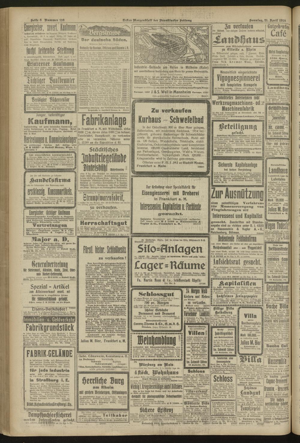 21.04.1918 = Nr. 110. Erstes Morgenblatt