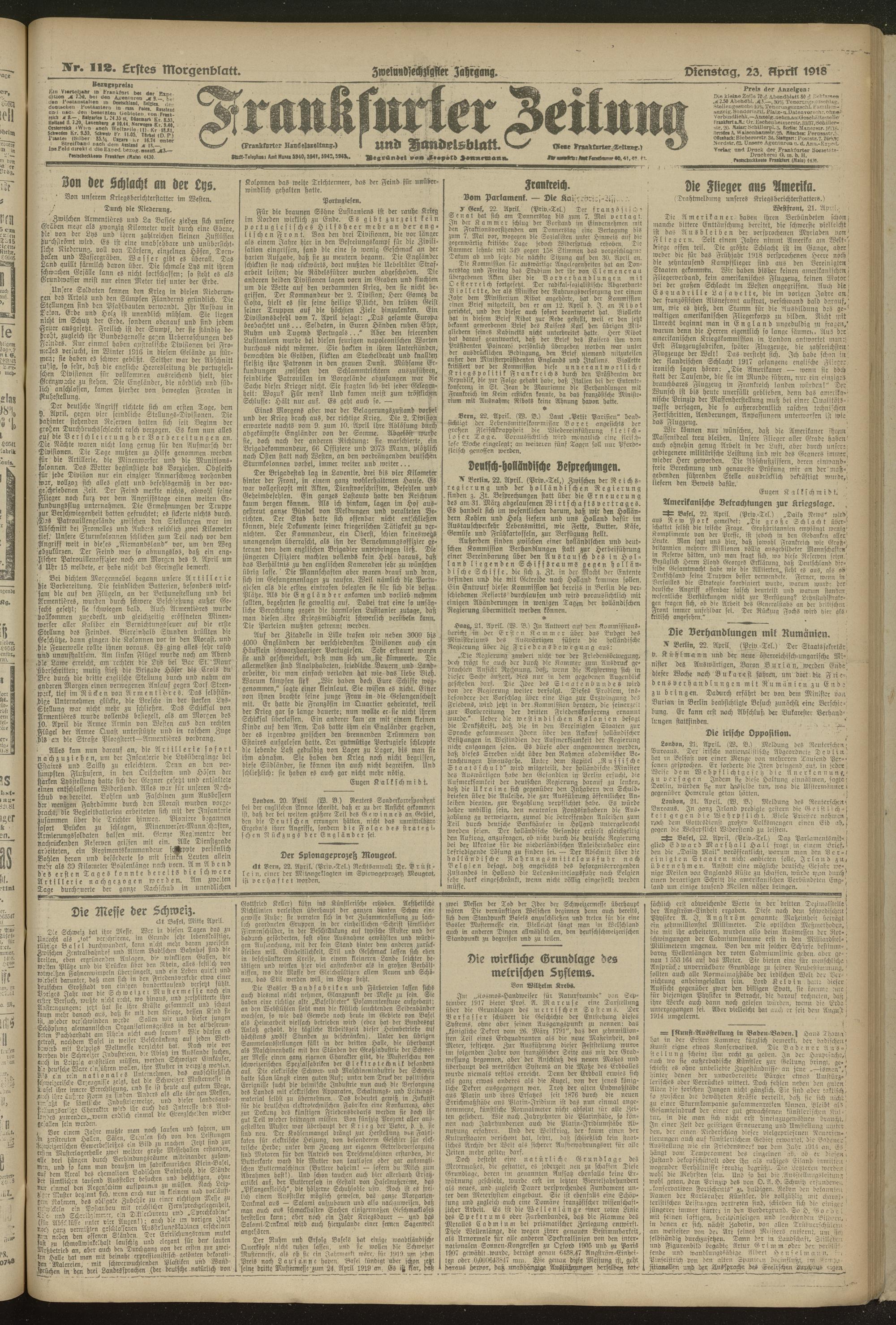 23.04.1918 = Nr. 112. Erstes Morgenblatt
