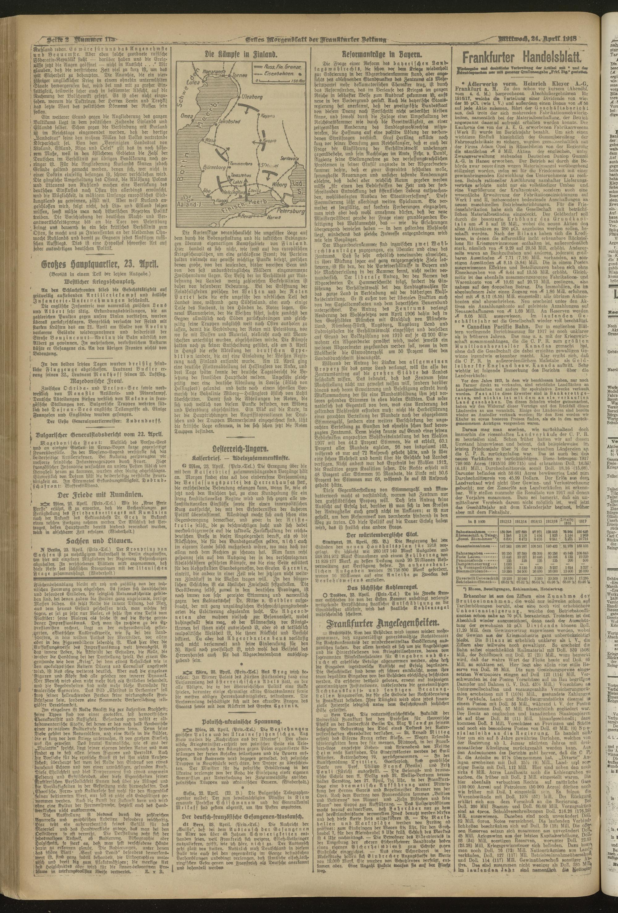 24.04.1918 = Nr. 113. Erstes Morgenblatt