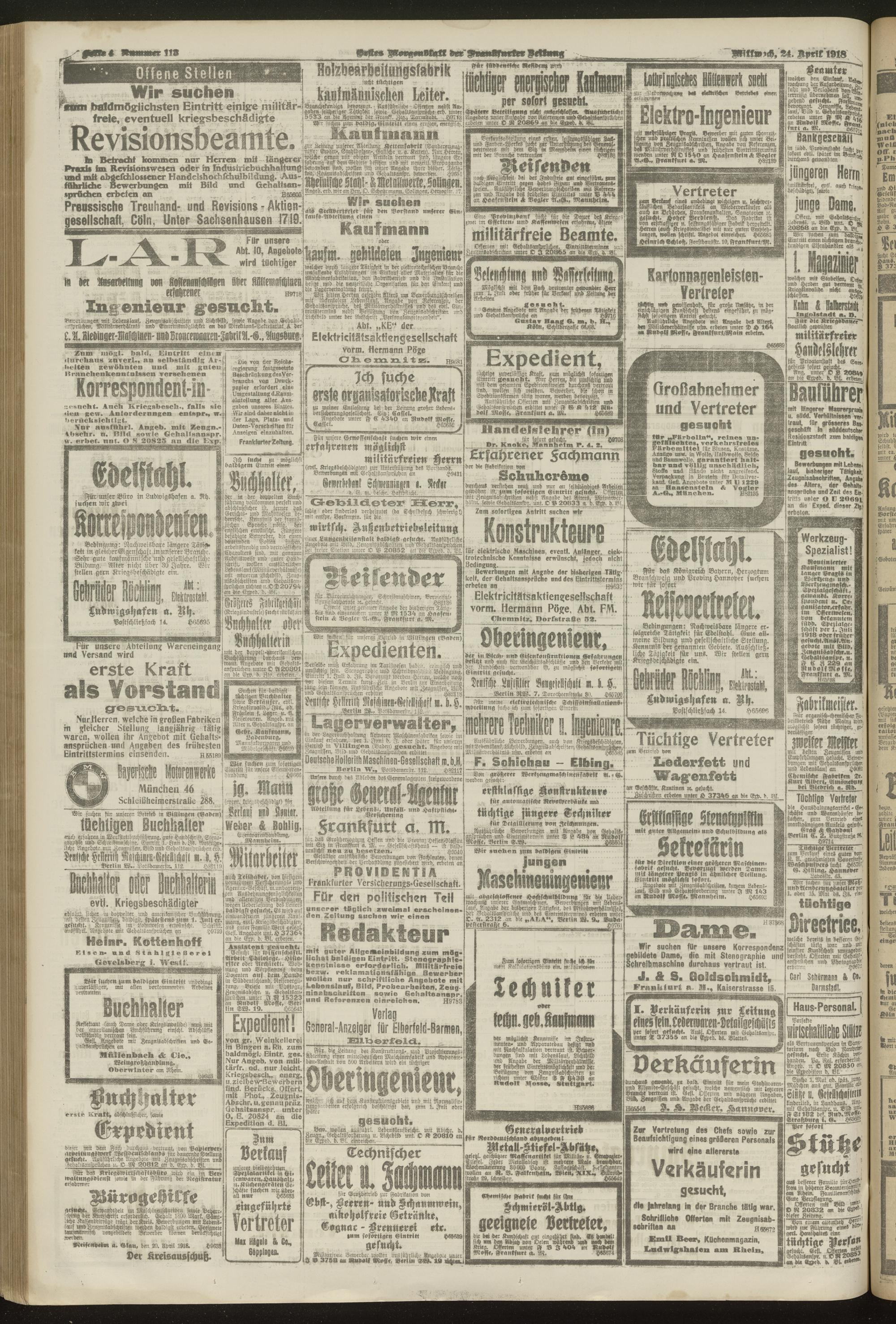 24.04.1918 = Nr. 113. Erstes Morgenblatt
