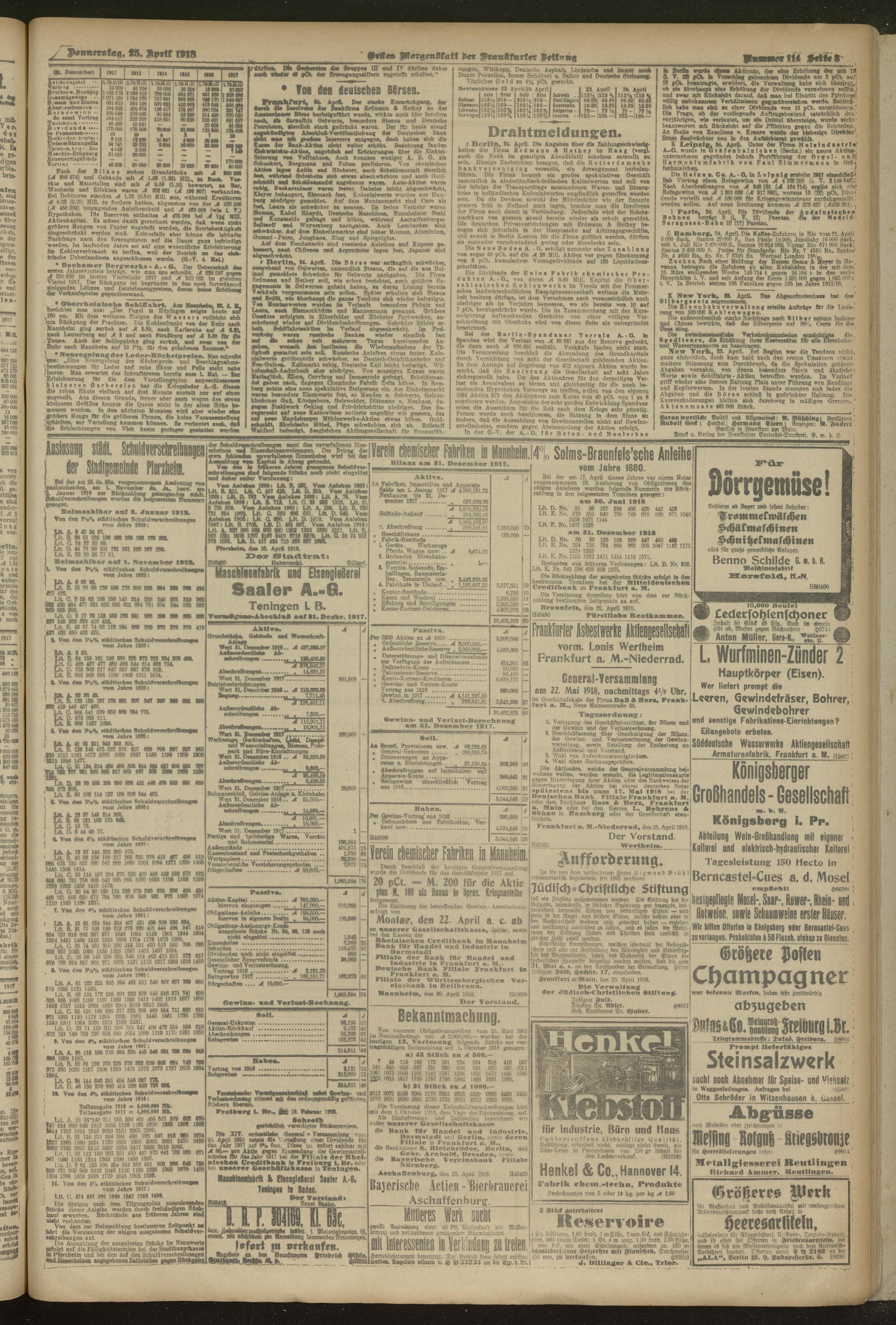 25.04.1918 = Nr. 114. Erstes Morgenblatt