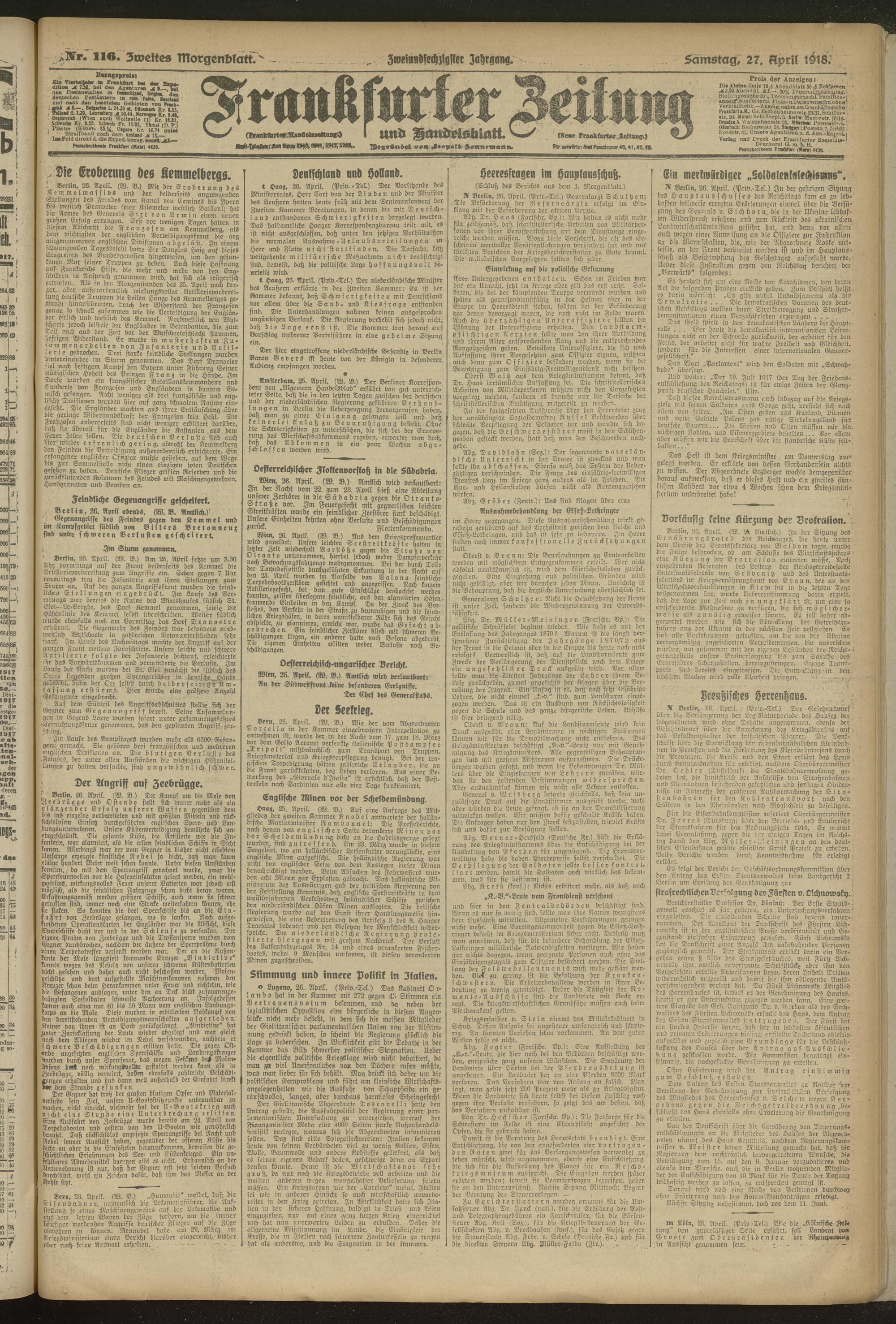 27.04.1918 = Nr. 116. Zweites Morgenblatt