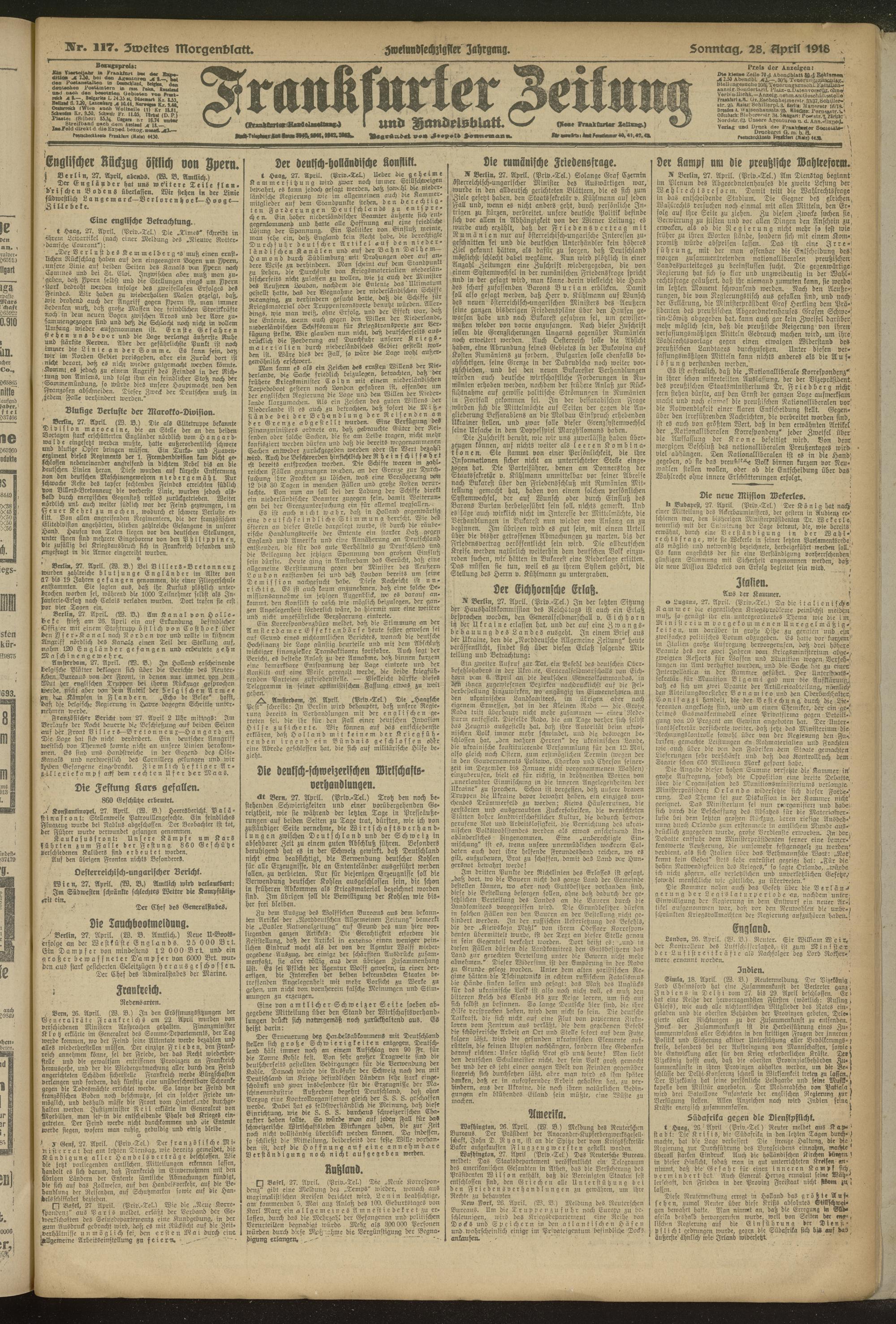 28.04.1918 = Nr. 117. Zweites Morgenblatt