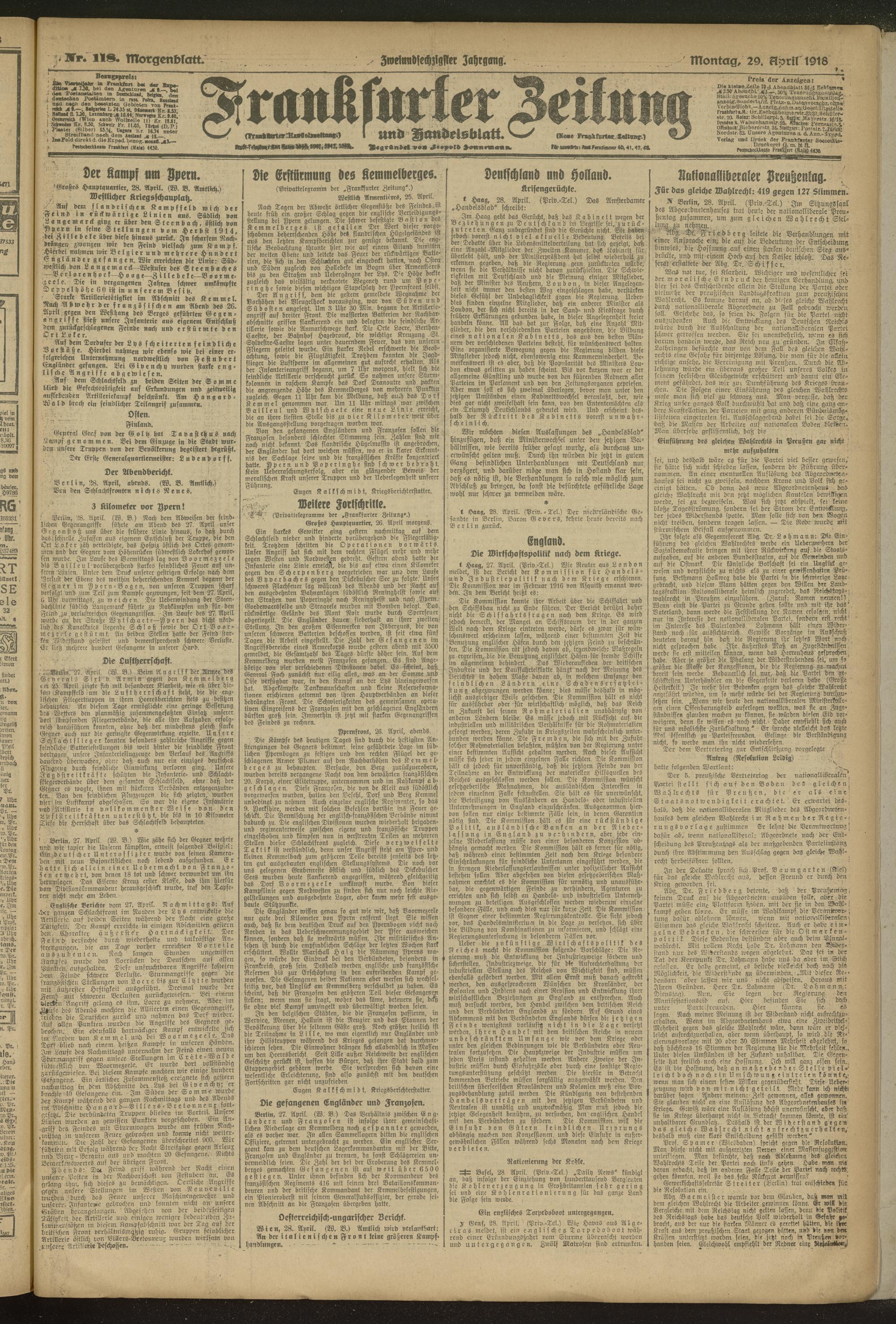 29.04.1918 = Nr. 118. Morgenblatt