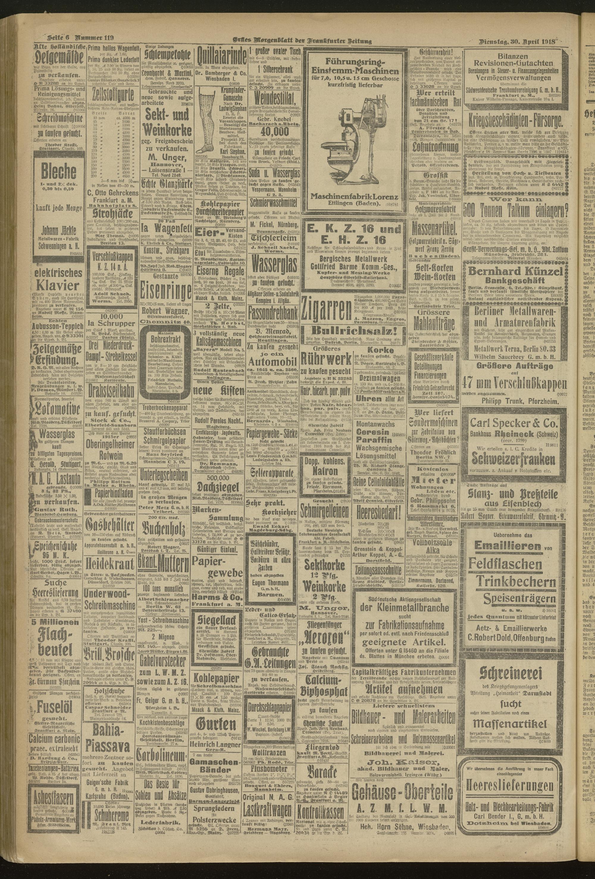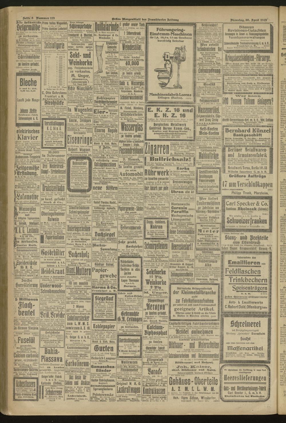 30.04.1918 = Nr. 119. Erstes Morgenblatt