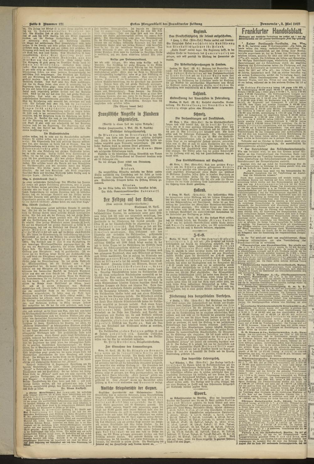 02.05.1918 = Nr. 121. Erstes Morgenblatt