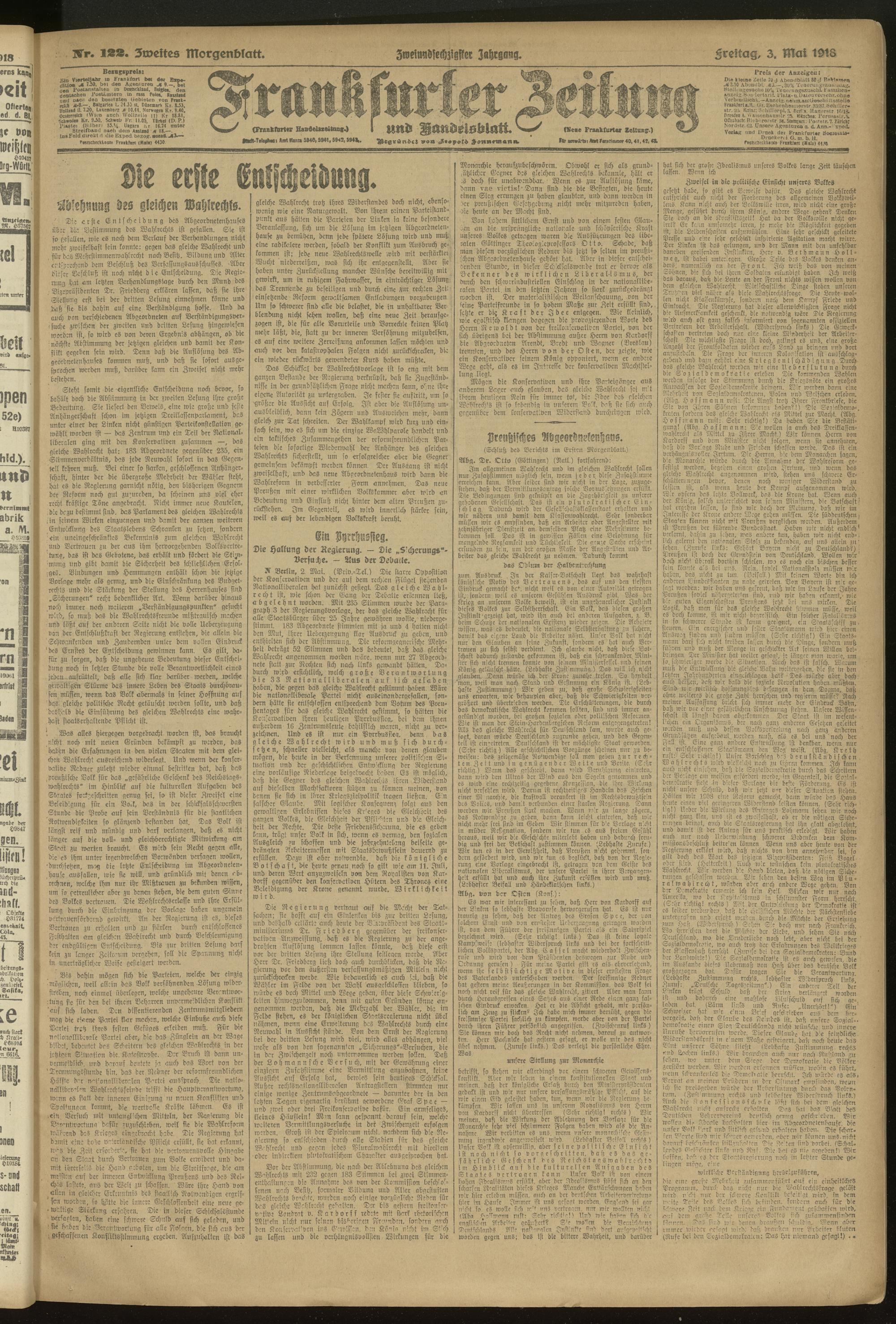 03.05.1918 = Nr. 122. Zweites Morgenblatt