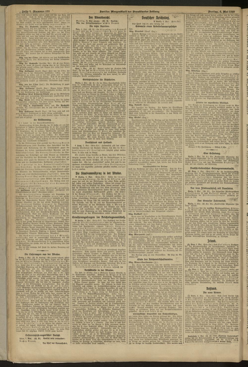 03.05.1918 = Nr. 122. Zweites Morgenblatt