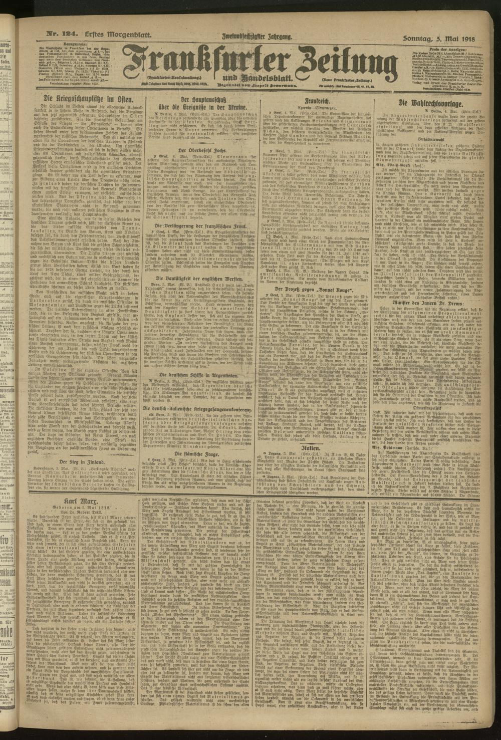 05.05.1918 = Nr. 124. Erstes Morgenblatt