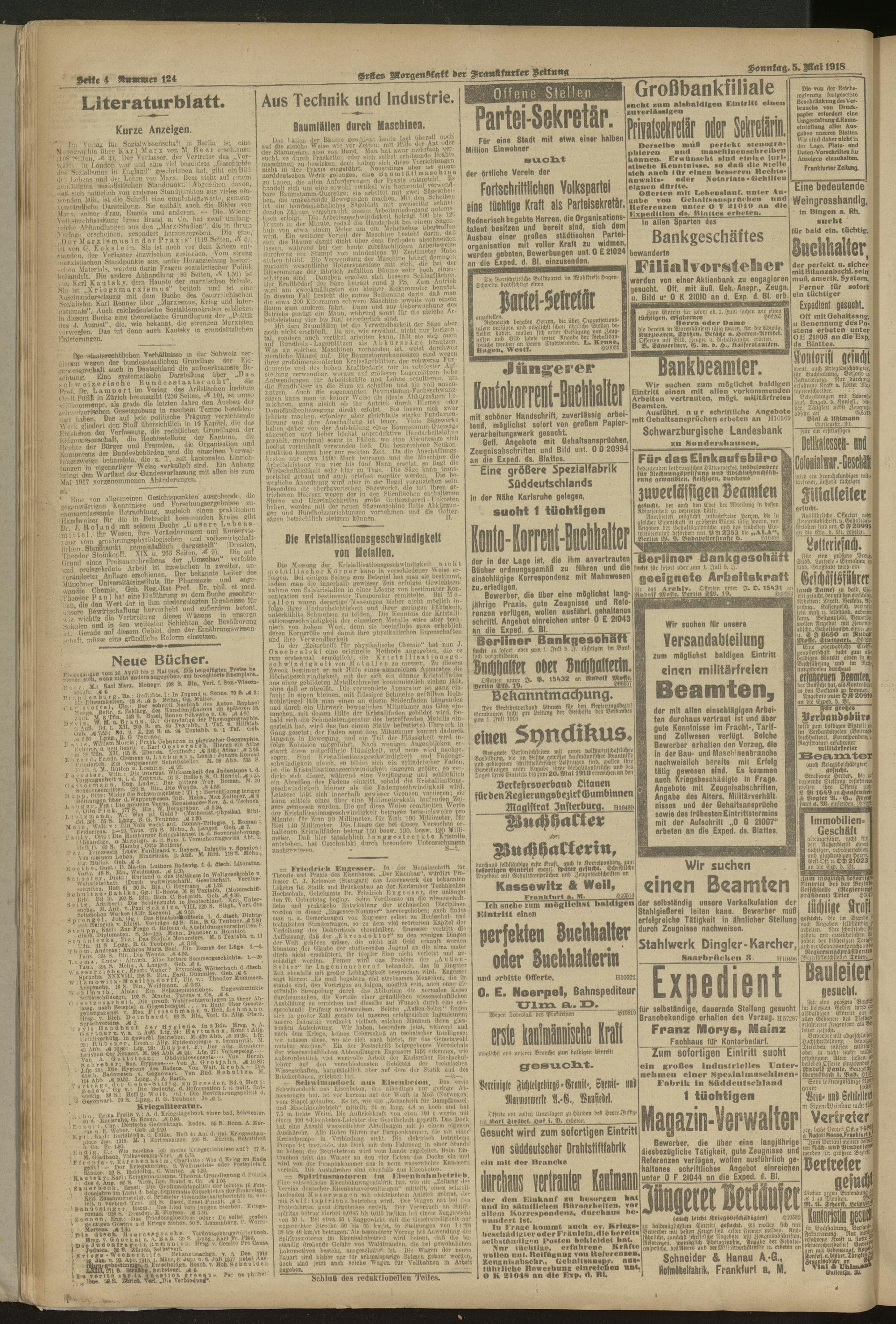 05.05.1918 = Nr. 124. Erstes Morgenblatt