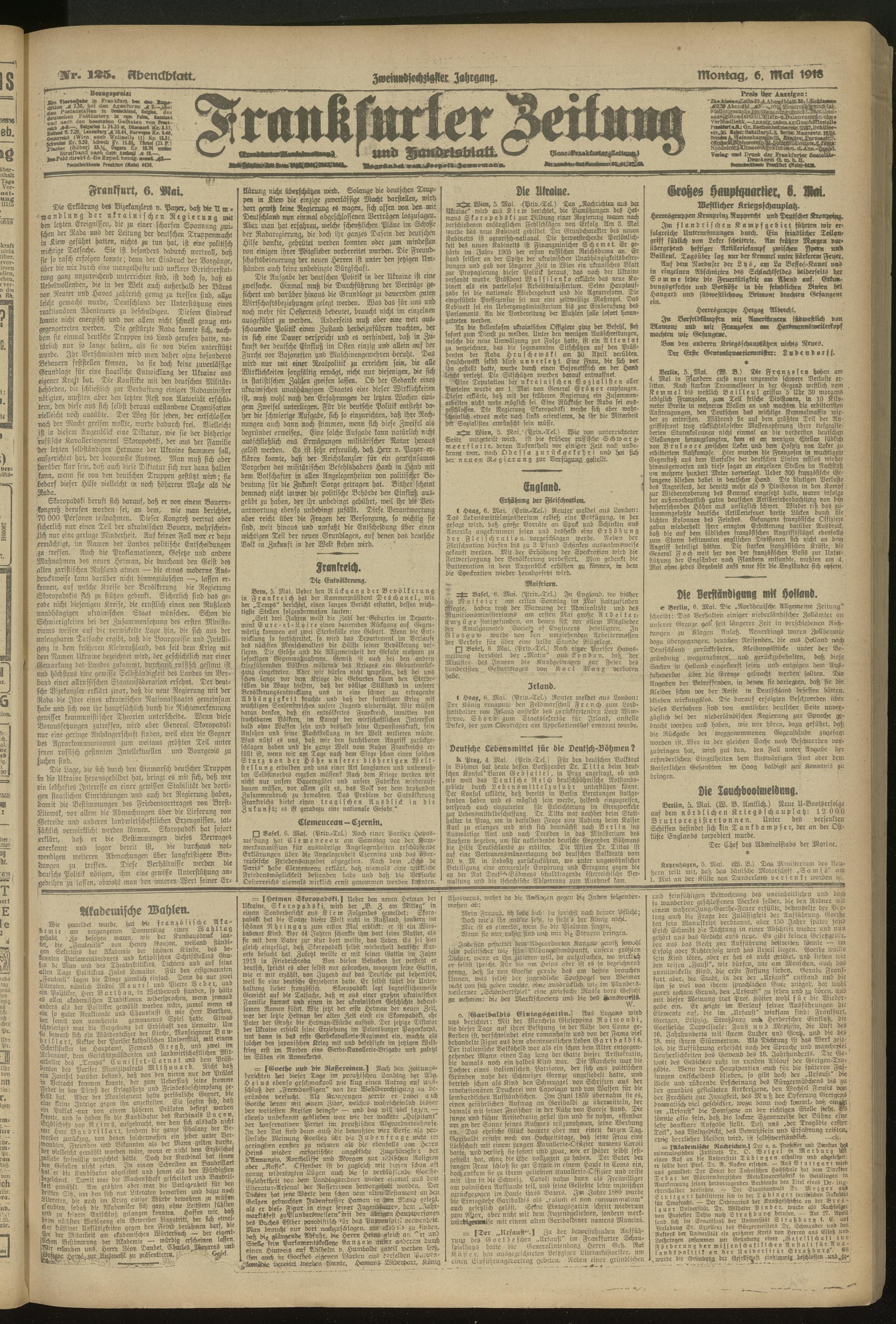 06.05.1918 = Nr. 125. Abendblatt