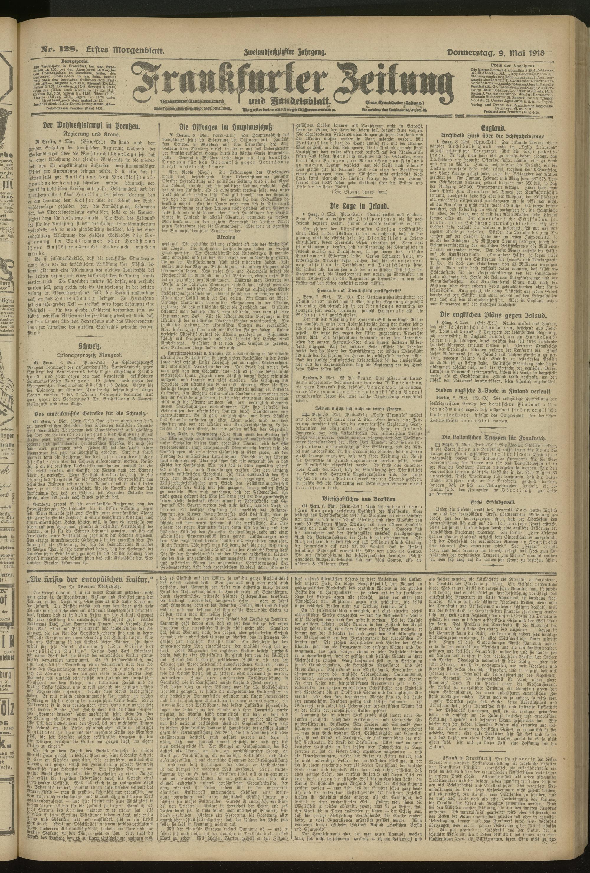 09.05.1918 = Nr. 128. Erstes Morgenblatt