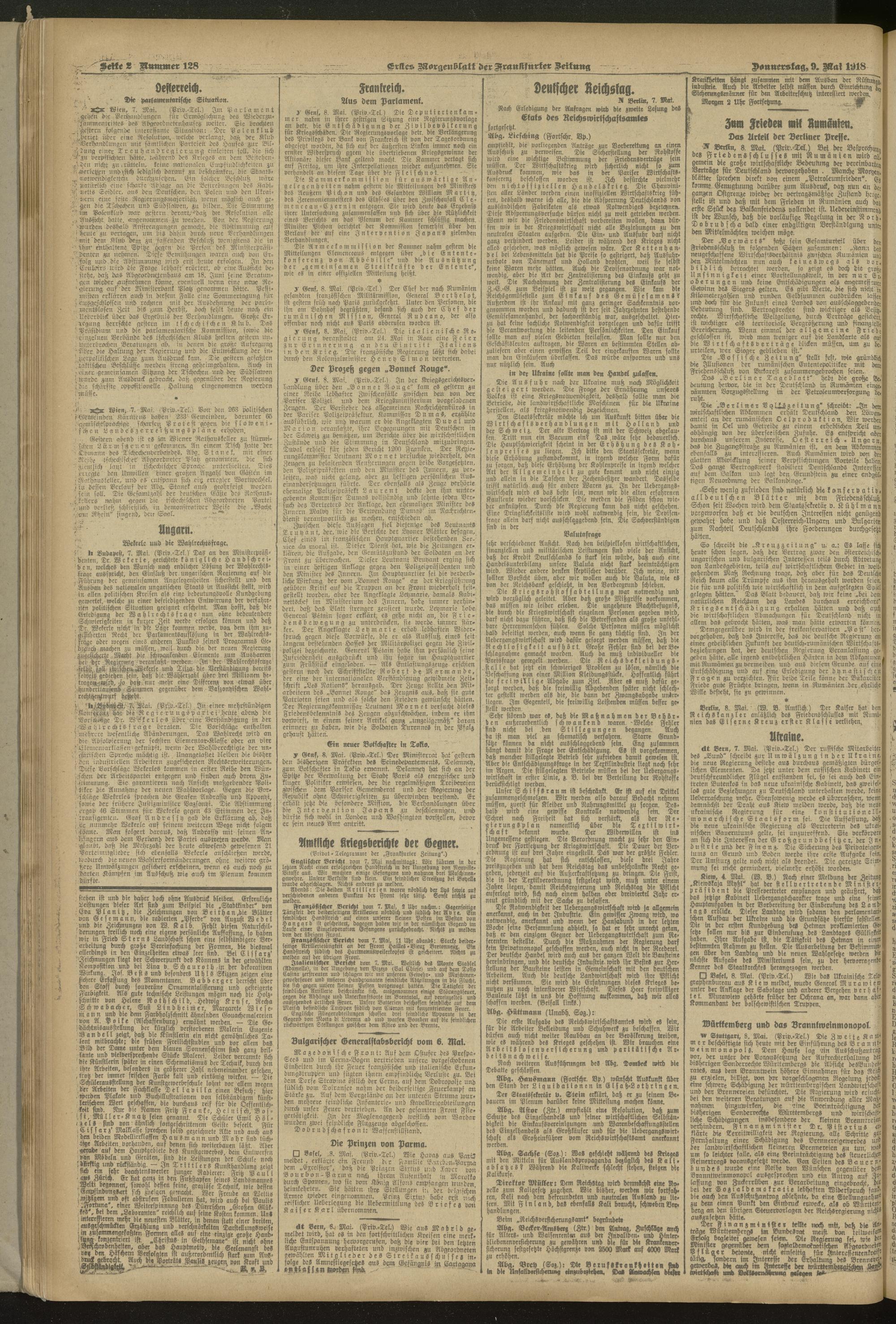 09.05.1918 = Nr. 128. Erstes Morgenblatt
